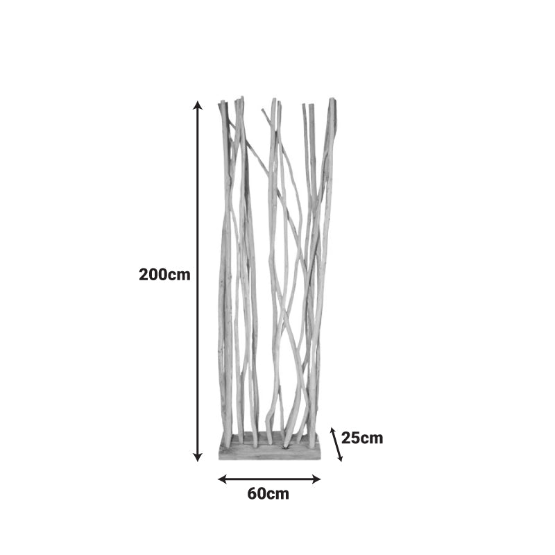 Параванът от тикови клони е уникален декоративен акцент, който внася природна красота и изтънченост във всяко пространство. Създаден от истинско тиково дърво, този впечатляващ елемент комбинира минималистичен дизайн с натурална естетика, превръщайки се в израз на модерен вкус и внимание към детайла. Независимо дали искате да разделите помещение, да добавите текстура към интериора или просто да внесете природна топлина в дома си, този параван от тикови клони е идеалното решение.