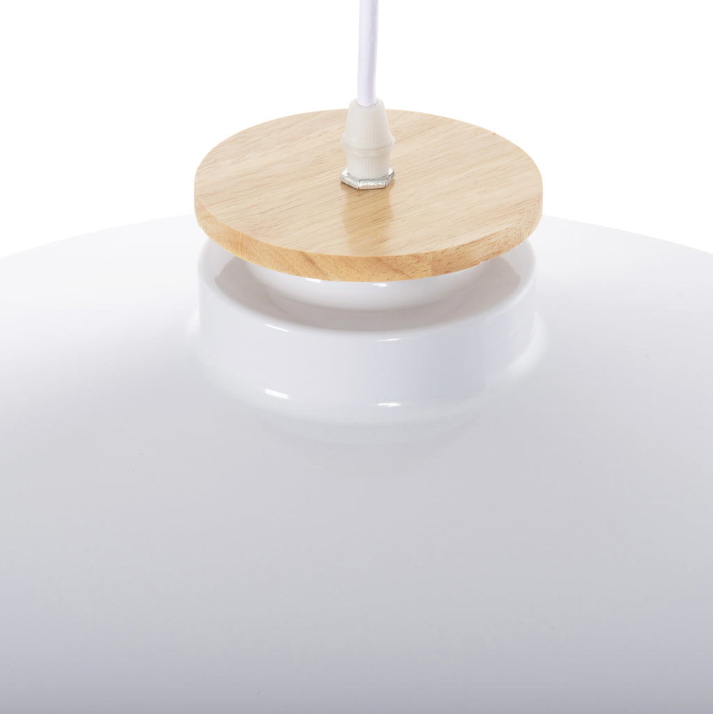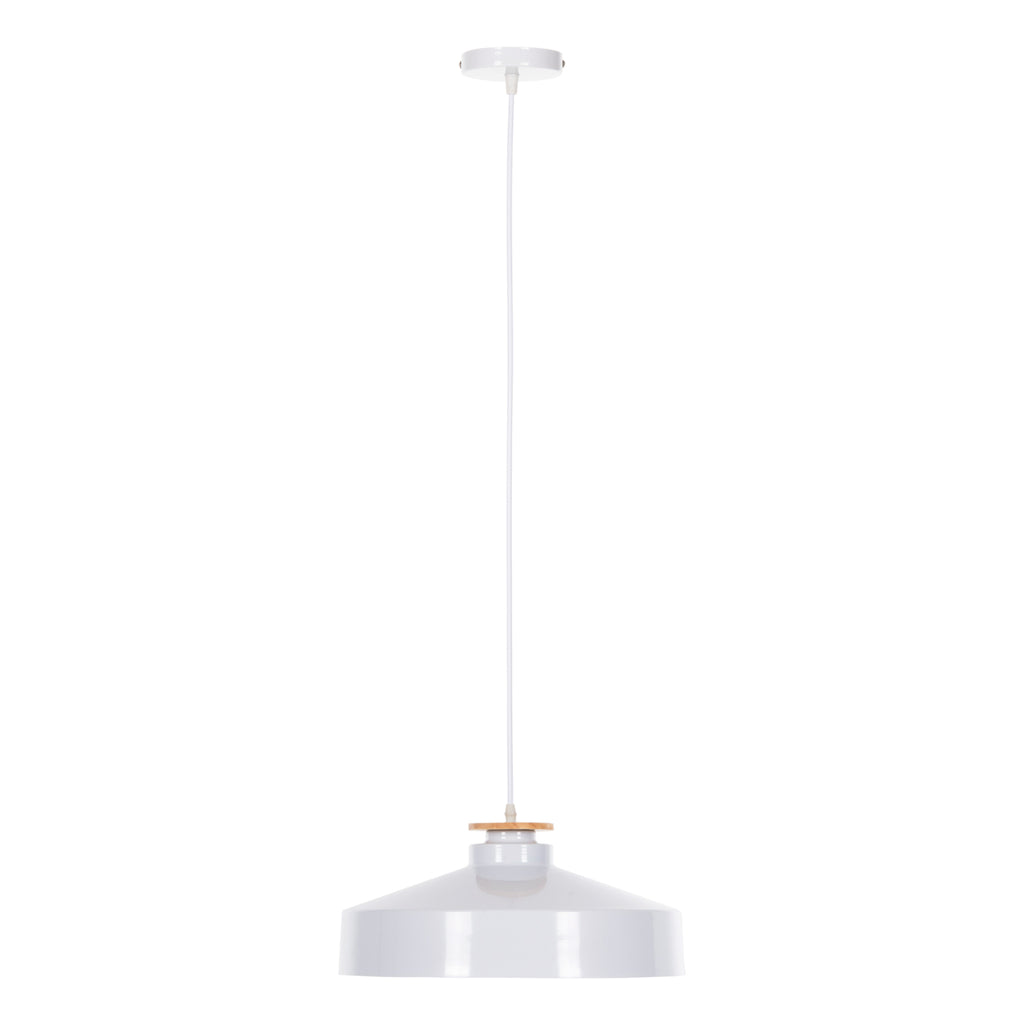 Открийте нашия нов висящ таван и допълнете декорацията си. Това е лампа с БЯЛ плитък метален абажур във формата на камбана с дървени детайли в горната част. Естетически, тя е допълнена от белия висящ кабел и бялата основа за тавана и е най-новата тенденция при таванните осветителни тела. ТЕХНИЧЕСКИ СПЕЦИФИКАЦИИ: Тип на цокъла на крушката: E27 Стандартна крушка Тип крушка: Препоръчително е да използвате LED 20w Размери: Φ40x116H см. Размери на абажура: Φ40x18H см. ПОДДРЪЖКА: Най-важното за тази конкретна лампа е редовно да я почиствате от прах. Ако имате време, разбира се, използвайте влажна кърпа и я направете да изглежда като нова. *Крушките не са включени в цената **Цветопредаването на продукта може леко да се различава от фотографското му представяне на вашия екран.