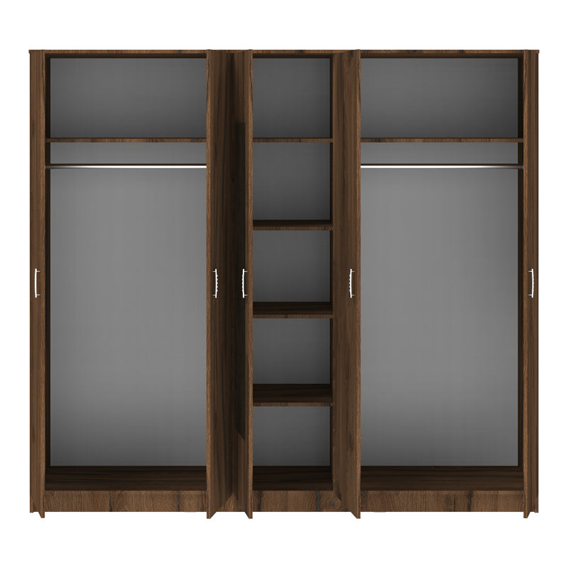 - Интериорът включва два метални пръта за закачалки за дрехи и централни рафтове за оптимално използване на пространството.