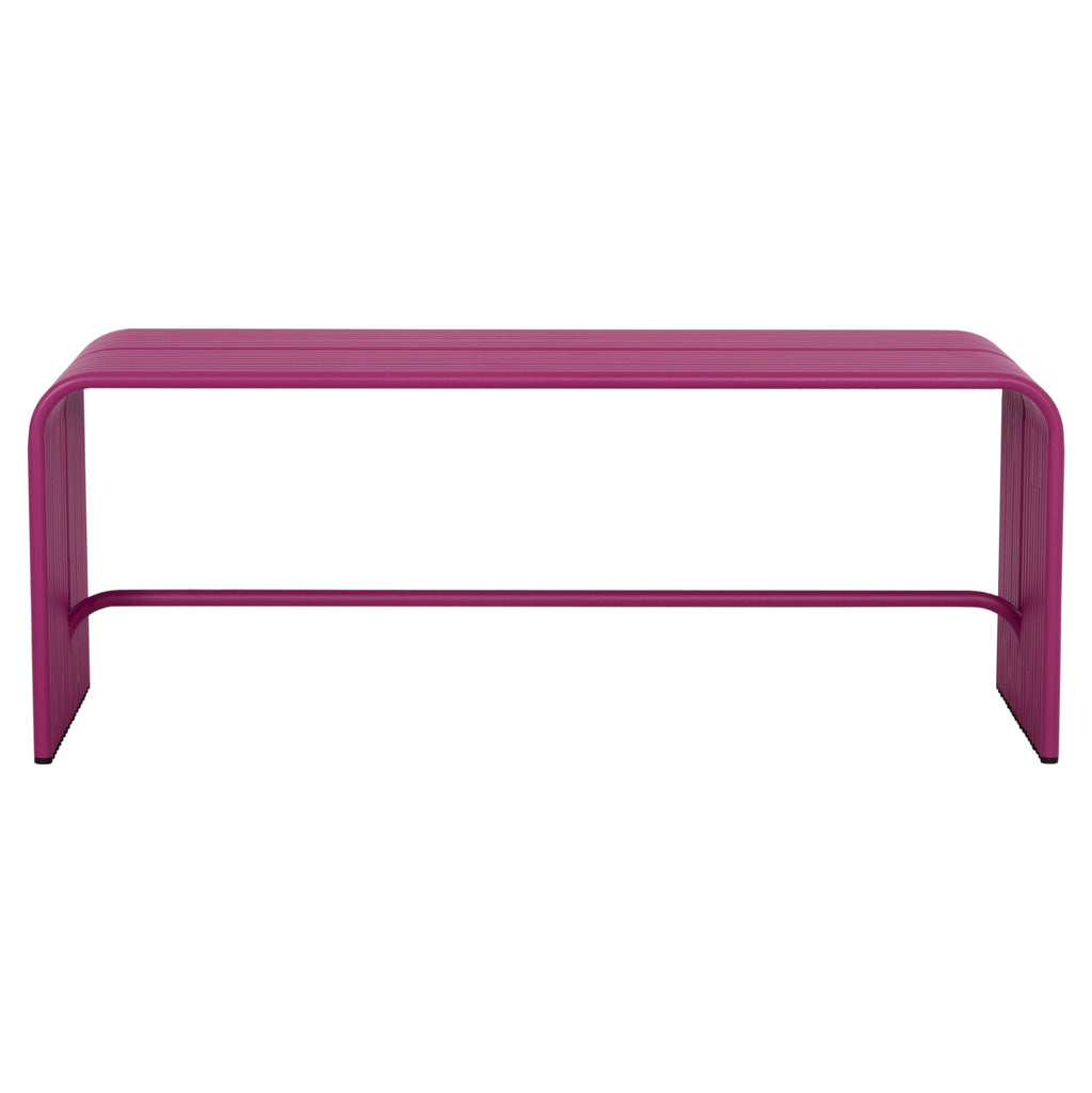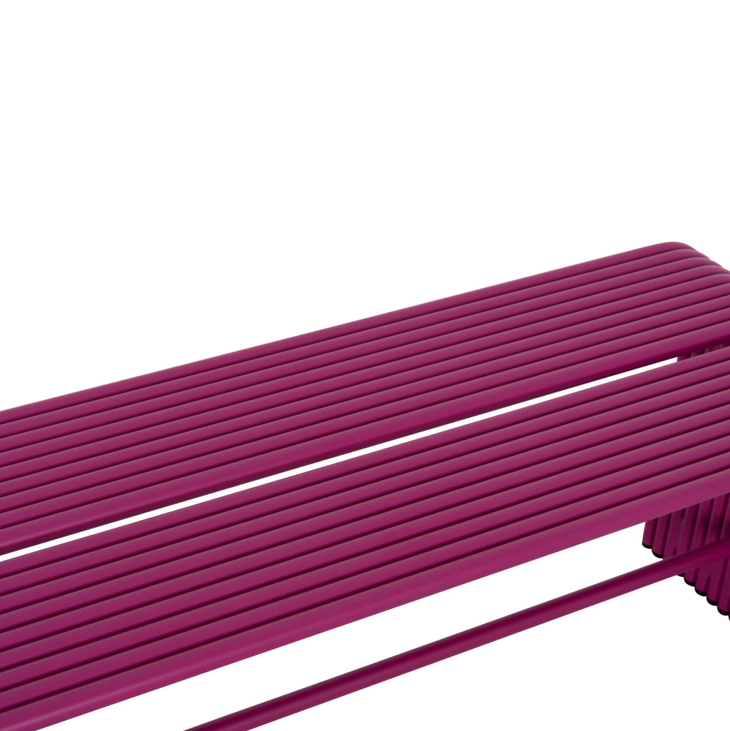 INTREPID е практична ниска 2-местна пейка, изработена изцяло от алуминиеви тръби в ярък ЛИЛАВ цвят, с пластмасови капачки в долната част на краката. Полезно и модерно допълнение към всяко пространство! РАЗМЕРИ: 109.5x37x42H см. Разстояние на краката: 109.5-105.5x38см. КОНСТРУКТИВНИ МАТЕРИАЛИ: Алуминият е "зелен" материал, който може да се рециклира неограничено време, като запазва характеристиките си без влошаване на качеството. По своята същност алуминият е устойчив на корозия. Информация: Електростатичното боядисване е процес на сухо покритие, използван като метално покритие. ПОДДРЪЖКА: Почиства се лесно с влажна кърпа. Не използвайте химически почистващи препарати. ** Цветопредаването на продукта може леко да се различава от неговото фотографско представяне на вашия екран.