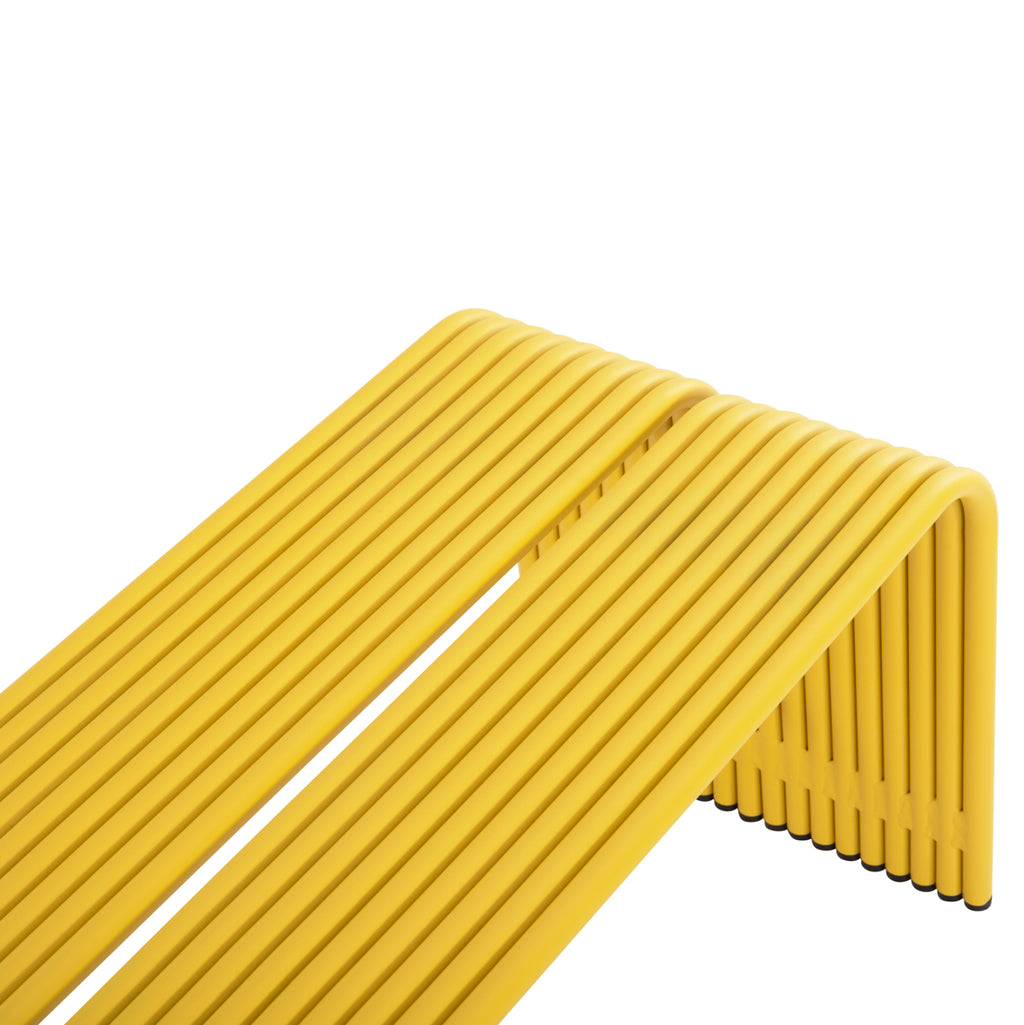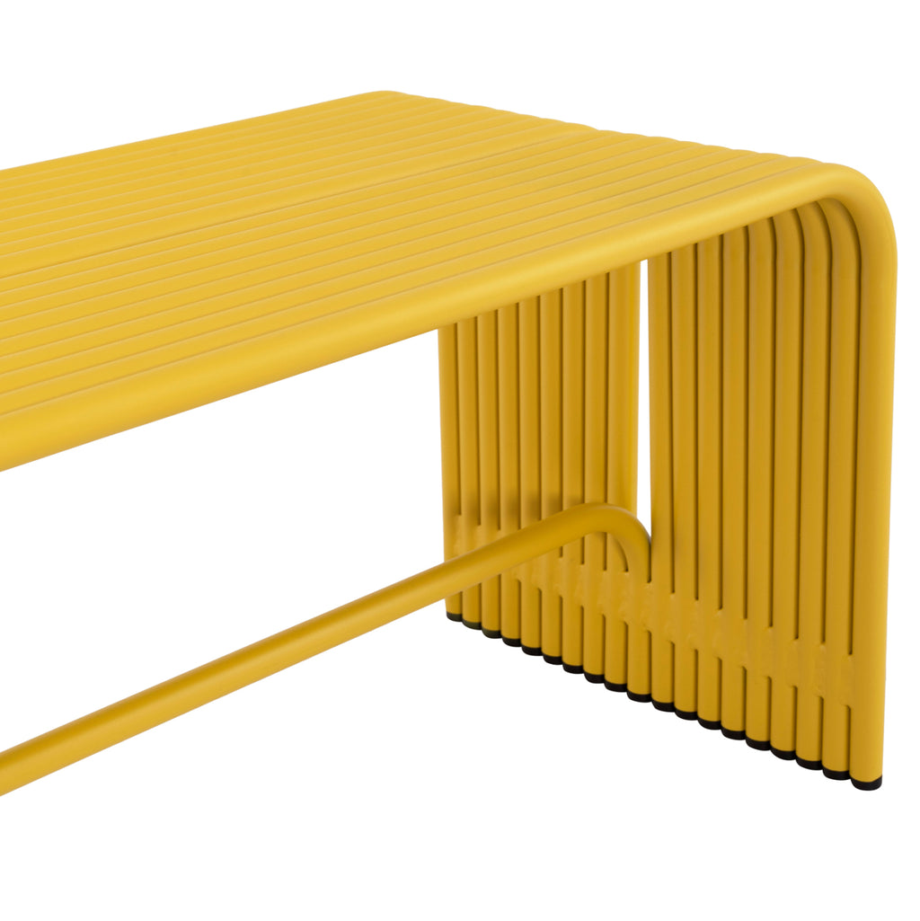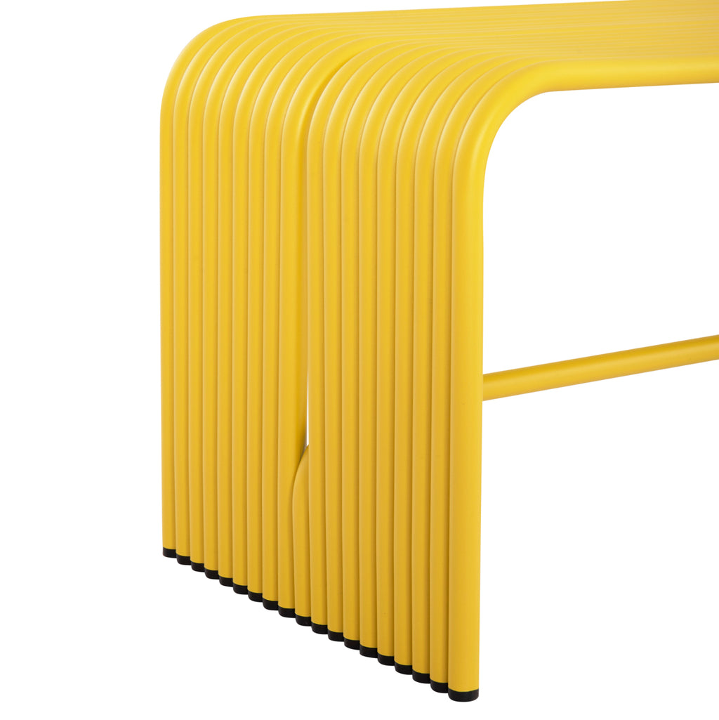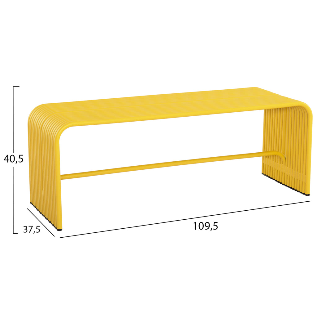 INTREPID е практична ниска 2-местна пейка, изработена изцяло от алуминиеви тръби в ЖЪЛТ цвят, с пластмасови капачки в долната част на краката. Полезно и модерно допълнение към всяко пространство! РАЗМЕРИ: 109.5x37.5x40.5H см. Разстояние на краката: 109.5-105.5x38см. КОНСТРУКТИВНИ МАТЕРИАЛИ: Алуминият е "зелен" материал, който може да се рециклира неограничено дълго време, като запазва характеристиките си без влошаване на качеството. По своята същност алуминият е устойчив на корозия. Информация: Електростатичното боядисване е процес на сухо покритие, използван като метално покритие. ПОДДРЪЖКА: Почиства се лесно с влажна кърпа. Не използвайте химически почистващи препарати. ** Цветопредаването на продукта може леко да се различава от неговото фотографско представяне на вашия екран.