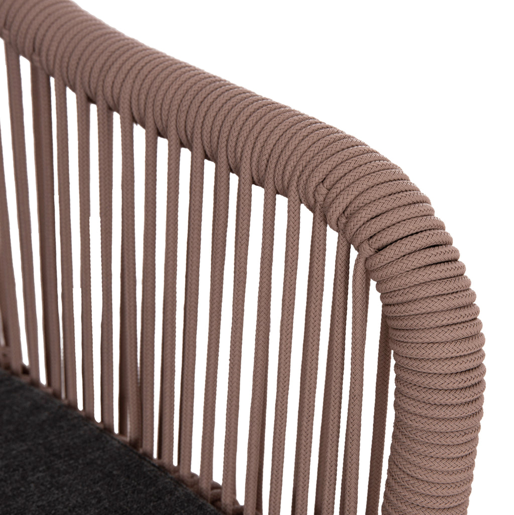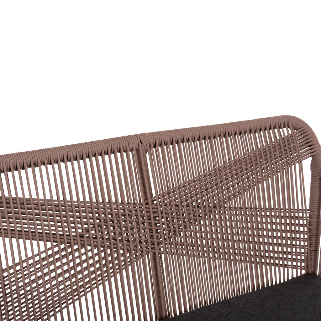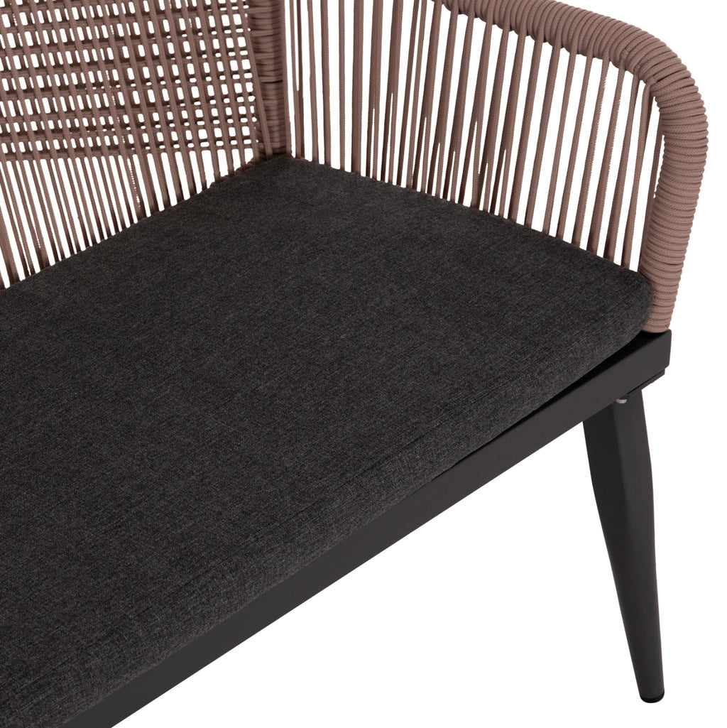Двуместният външен диван MYRTIA е изключителен и съчетава алуминиевата рамка в цвят CARBON с BEIGE Teslin въже, което минава през целия диван. Седалната възглавница е покрита с полиестерен плат в цвят CARBON. Характерна особеност на този диван е, че краката са високи, което води до висока височина на седалката. РАЗМЕРИ: 123x61x90H см. Размери на седалката: 108x43 см. Размери на гърба: 113х49см. Височина на ръцете: 65см. Височина на седалката: 47 см. Височина на крака: 37 см. Разстояние между краката: 113х46 см. МАТЕРИАЛИ НА КОНСТРУКЦИЯТА: - Рамката на дивана е изработена от алуминий боядисан с електростатична боя. Алуминият е метал с отлични механични свойства и много устойчив на различни форми на корозия по природа и изисква минимални разходи за поддръжка. Информация: Електростатичното боядисване е сух процес на нанасяне на покритие, използван като метален финиш, който "залепва" към метала чрез топлина. - Teslin е ИЗКЛЮЧИТЕЛНО ЗДРАВ еднослоен водоустойчив синтетичен материал. Teslin обикновено се прави от полиестерни индустриални нишки с висока якост и може да се използва за множество приложения. Подлежи на рециклиране и нетоксичен. ПОДДРЪЖКА: Използвайте много мека кърпа или гъба, обилно количество вода и мек почистващ продукт като препарат за миене на съдове. Алуминиевите мебели нямат специални изисквания за поддръжка, тъй като не корозират. **Точното цветопредаване на продукта може леко да се различава от действителния продукт поради различни настройки на монитора.