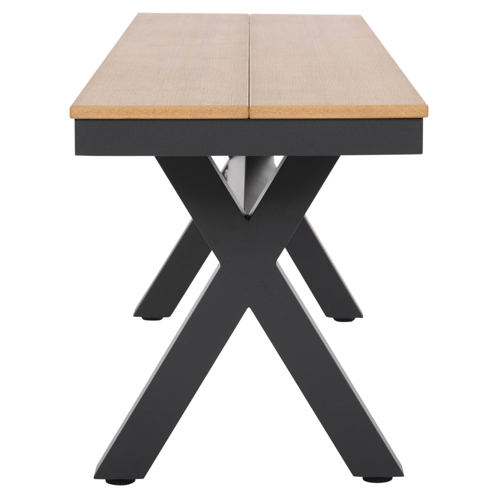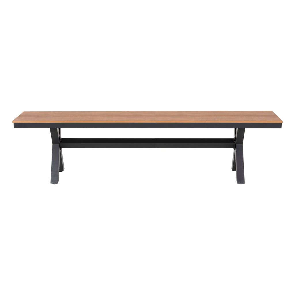 Външната пейка TAWNEE има алуминиева рамка в цвят CARBON, с две напречни основи, свързани с хоризонтална широка греда. Повърхността на седалката е изработена от две полидървесни плочи в цвят НАТУРАЛНО ДЪРВО. Големите му размери, в които удобно се побират 4 души, го правят красиво и практично допълнение за множество приложения както у дома, така и в бизнеса. РАЗМЕРИ: 220x36x44.5H см. Височина на крака: 38см. Разстояние между краката: 163-172x24-35 см. МАТЕРИАЛИ НА КОНСТРУКЦИЯТА: Рамката е алуминиева. Алуминият е „зелен“ и антикорозионен материал, който може да се рециклира неограничено време, като запазва характеристиките си без влошаване на качеството. Седалката е изработена от полидървесина. Това е форма на пластмасов дървен материал, който е екологичен и изисква малко поддръжка. Пластмасовият дървен материал е 100% рециклируем и в същото време е водоустойчив и издържа на всякакви видове гниене и мухъл. ПОДДРЪЖКА: Можете да избършете всички повърхности с влажна кърпа и това е достатъчно, за да изглежда пейката отново като нова. За упорити петна можете да използвате мек почистващ препарат. Избягвайте продължителното излагане на повърхността за сядане на слънце, както и контакта й с токсични химически продукти. *Доставя се несглобен във фабрична опаковка ** Цветопредаването на продукта може леко да се различава от фотографското представяне на вашия екран.