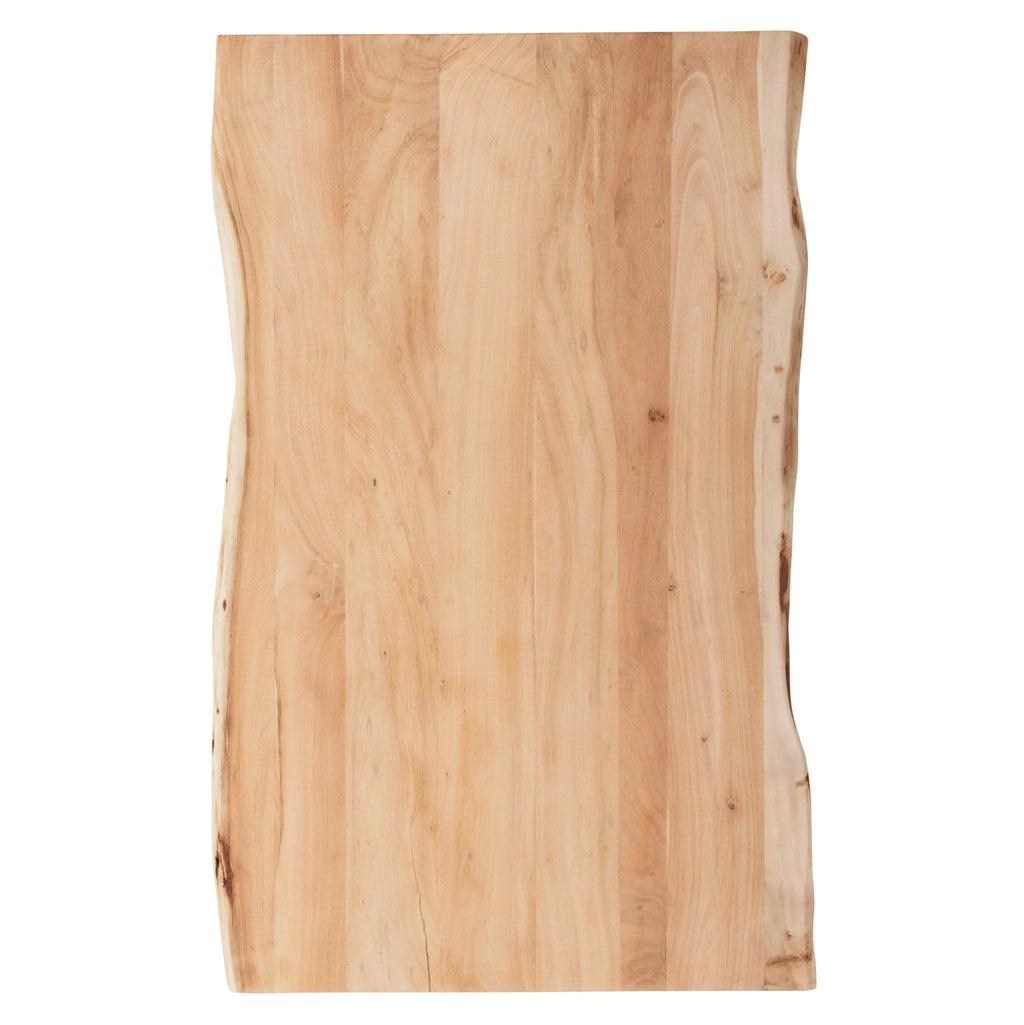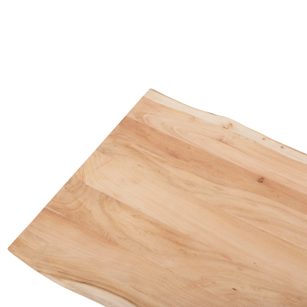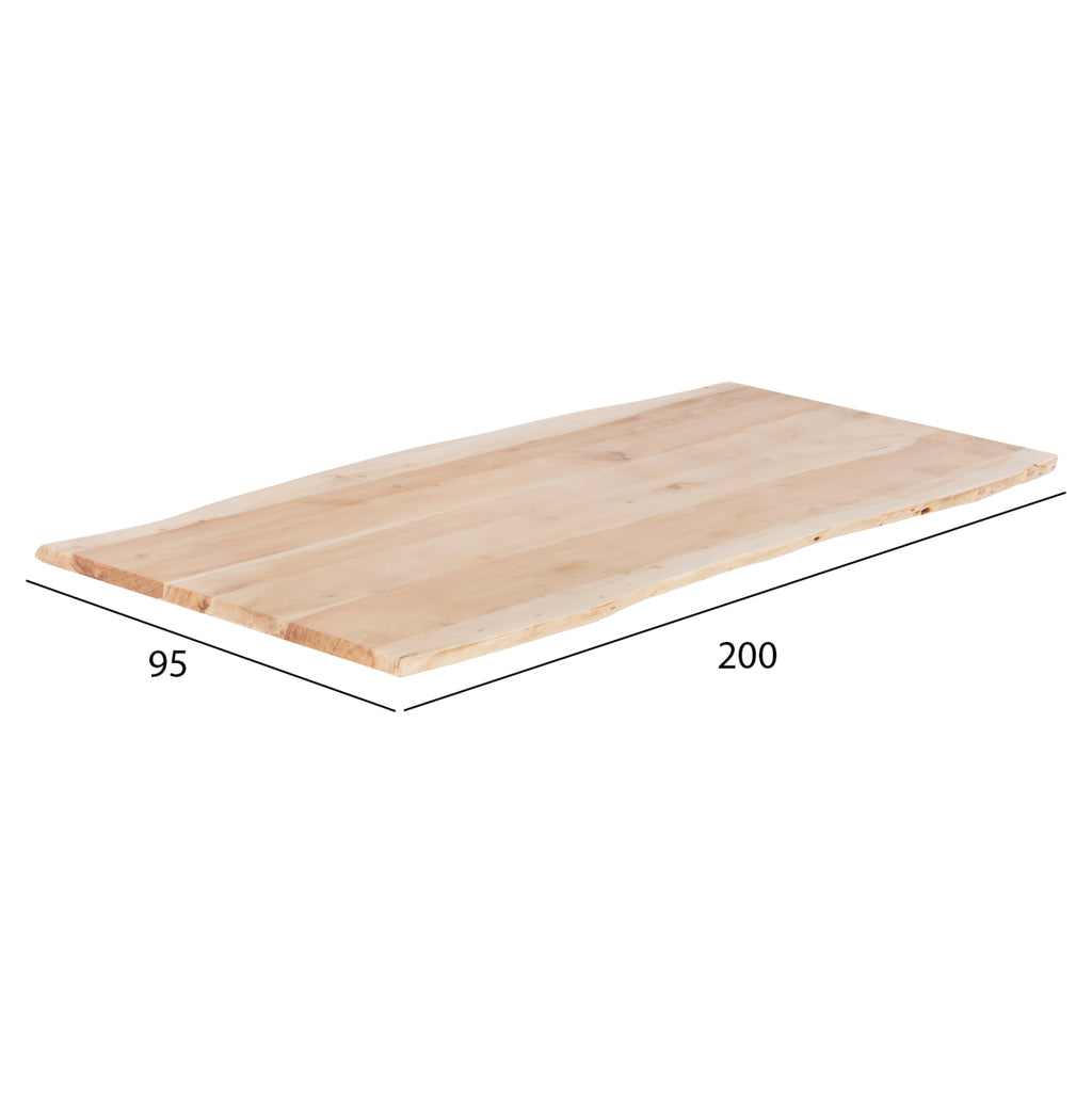 Плот за вътрешна маса, изработен от масивно акациево дърво. Като специална характеристика, ръбовете на повърхността бяха обработени, за да създадат оригиналния характер и естествено впечатление на резен от огромно дърво. РАЗМЕРИ: 200х95 см.---*Размерите са ориентировъчни. Дебелина на повърхността: 4см. Важни бележки 1) Преди да монтирате винтовете, трябва да проверите размера им, за да избегнете износване на повърхността. (Ако са монтирани грешни винтове, повърхността ще се повреди, тъй като винтовете проникват в нея. За да избегнете повреда на продукта, препоръчваме да проверите размера на винта, преди да бъде монтиран на повърхността, дори ако винтовете са от нашата компания или ги купувате от търговията.) 2) Продуктът е изработен от естествено масивно акациево дърво и всеки е уникален поради неравностите на стволовете на дърветата. Съществуващите пукнатини или тези, които могат да се образуват с течение на времето се дължат на свиването-разширяването на живия организъм, наречен масивна дървесина, а не са производствен дефект, придавайки оригиналност и уникален дизайн на вашето пространство. По време на производствения процес съществуващите пукнатини се изглаждат и стабилизират с материал от същата дървесина. Поради това МОЖЕ ДА ИМА ЦВЕТОВИ ВАРИАЦИИ И РАЗЛИКИ В РАЗМЕРИТЕ НА ПРОДУКТА поради размерите на обработената дървесина. Това не са дефект на продукта.