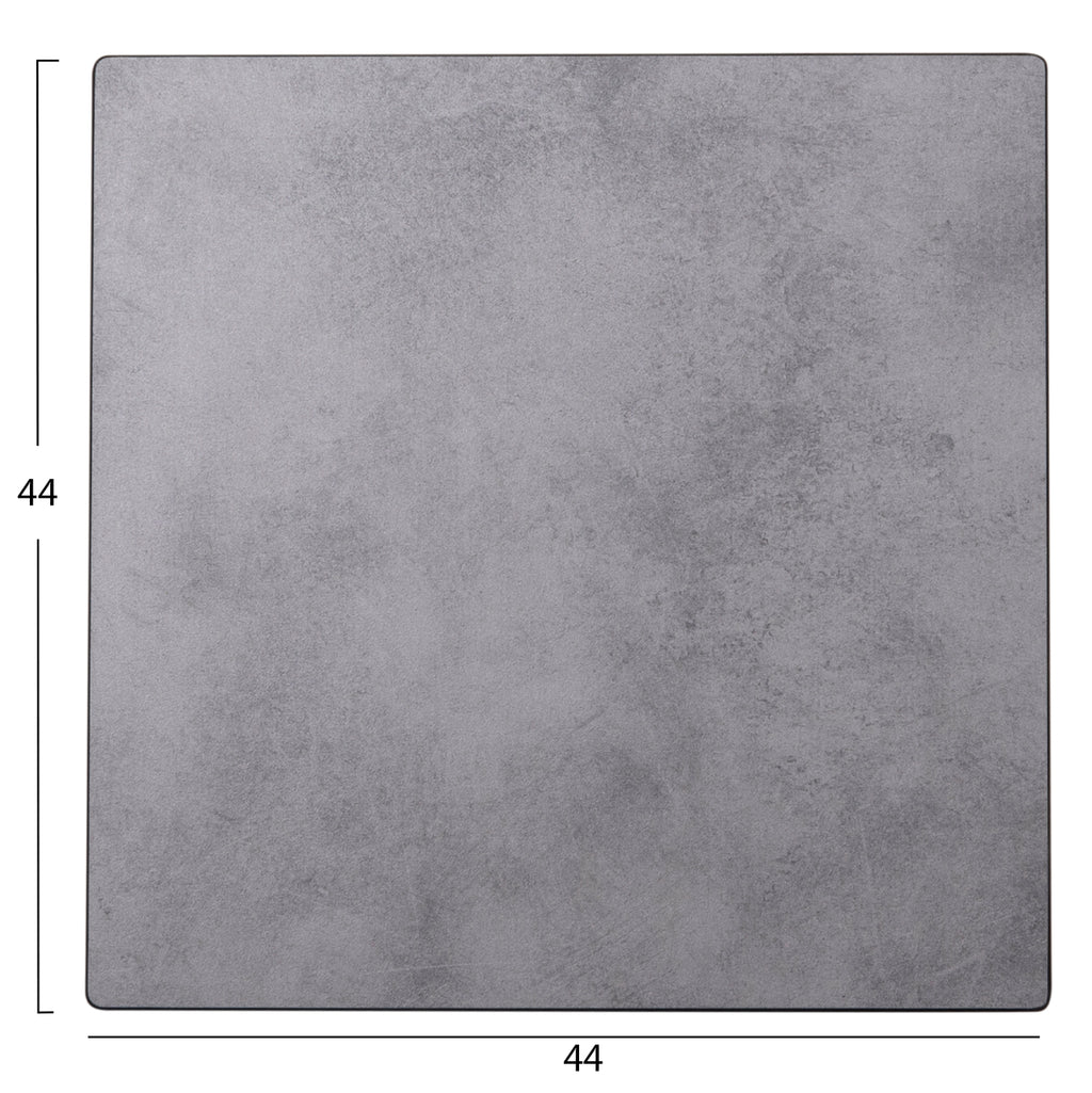 Квадратен плот в циментов нюанс, който е подходящ за контакт с храни и като цяло материалът е екологичен. Може да се използва на различни места като кафенета, ресторанти и туристически места за настаняване, на закрито или на открито. ---ВНИМАНИЕ: Този код е наличен в ограничени количества в това измерение! РАЗМЕРИ: 44Х44см. Дебелина: 15мм. МАТЕРИАЛ НА КОНСТРУКЦИЯТА: Повърхността е изработена от HPL (ламинат с високо налягане). Изработен е от синтетична смола, издръжлив и твърд. Това са дъски, покрити с листове от синтетични материали, които приличат на дърво. Като материал е с матово или гланцово покритие. Поставя се върху MDF или новопан със специални смоли и има голямо разнообразие от цветове и имитации на дърво или други дизайни. Основните му характеристики са неговата устойчивост на удари, абразия и петна, устойчивостта му на създаване на бактерии и накрая устойчивостта на цвета му на светлина и изкуствено осветление. Той също така показва устойчивост на високи температури, с отлична устойчивост на огън, надраскване и особено висока водоустойчивост. (В случай, че желаете HPL повърхността да бъде предварително пробита от нашата компания, цената е 4 евро на брой.) Важна забележка: Преди да монтирате винтовете, трябва да проверите размера им, за да избегнете повреда на повърхността. (Ако са монтирани грешни винтове, повърхността ще се повреди, тъй като винтовете проникват в нея. За да избегнете повреда на продукта, се препоръчва да проверите размера на винта, преди да го монтирате на повърхността, дори ако винтовете са от нашата компания или ги купувате от търговската мрежа.) ** Цветопредаването на продукта може леко да се различава от неговото фотографско представяне на вашия екран.
