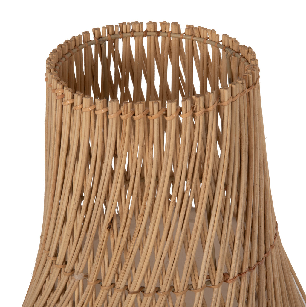 КГ7835- - Подова лампа от естествен ратан в НАТУРАЛЕН цвят. Лампата е с форма на капка и лежи директно на пода. Проста и елегантна подова лампа, която сладко разпръсква светлината през колоната от плат, която "домакиня" на лампата, и създава атмосферата, която винаги сте си представяли за вашето пространство, така че да можете да създадете свой собствен кът за почивка или дори декорация. Защото светлината означава повече от лампа. Това означава декорация, атмосфера, изкуство, усет и разбира се наука. ТЕХНИЧЕСКИ ХАРАКТЕРИСТИКИ: Тип цокъл на крушката (резба) : E27 обикновен цокъл на крушка Тип на крушката: Препоръчително е да се използва LED- Максимум 60w Размери: Φ55x101H cm. CE сертифициран МАТЕРИАЛ НА КОНСТРУКЦИЯТА: Лампата е изработена от отлично качество РАТАНОВА. Ратанът е най-добрият и използван естествен материал за различни конструкции. Ратанът, отглеждан в Северна Азия, е най-висококачественият и най-издръжлив материал от подобни, отглеждани в други региони. С повече от 600 различни вида РАТАНА може да се разграничи като силно влакнесто растение, подобно на бамбука и широко използвано, защото е леко, издръжливо, гъвкаво и привлекателно. ПОДДРЪЖКА: Лампата не се нуждае от специална поддръжка. Достатъчно е почистване на прах на редовни интервали. ПРЕДИМСТВА: Лампата може да се използва в офиси, кафенета, ресторанти, хотели и дори у дома! Благодарение на простия си дизайн, той лесно се комбинира с околното пространство, независимо дали е класическа декорация или по-модерна. Само си представете кът за четене с масичка за кафе и подова лампа! Страхотна снимка!