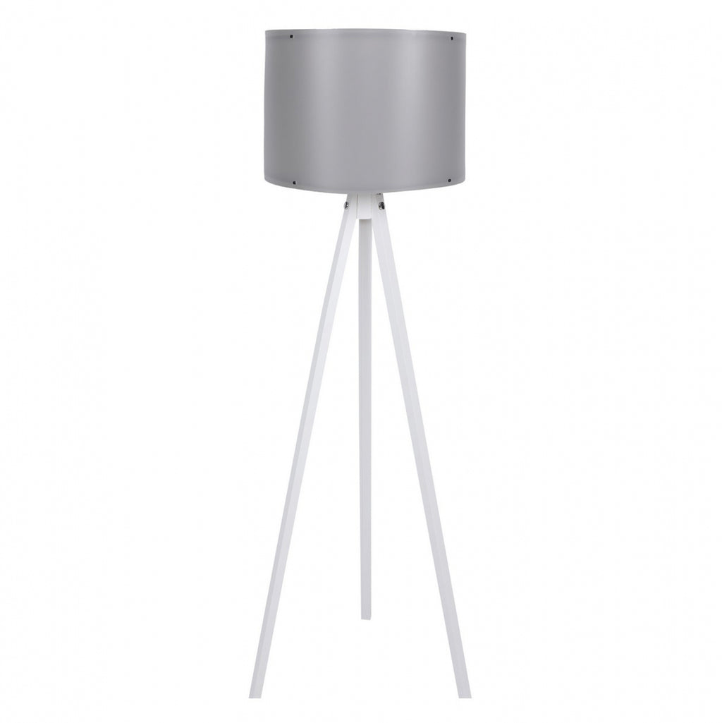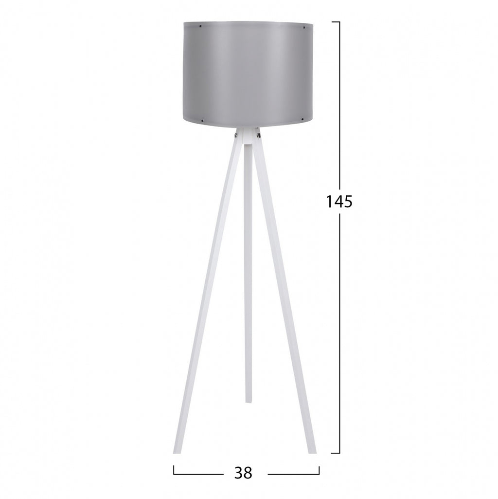 Модерна подова лампа, с високи крака и специална капачка, която хармонично разпръсква светлината във всяко пространство, където е поставена. Красив, семпъл дизайн с фин двуцветен цвят. Рамка от подсилени MDF крака, с голяма устойчивост на износване и време, в бял цвят и полипропиленова капачка в сив цвят. Приема 1 крушка E27 до 45 - 60 W, която не е включена в опаковката. Подходящ за всички зони на дома или работното място. Размери: Φ38x145 см. Цвят на рамката: Бял Цвят на шапката: Сив Височина на шапката: 25см. Диаметър на шапката: 38 см. Височина на крака: 120 см. Обща височина: 145 см. Дължина на кабела: 200 см. Стил на осветлението: Модерно от европейско производство и произход. Продуктът се предлага във фабрична опаковка.
