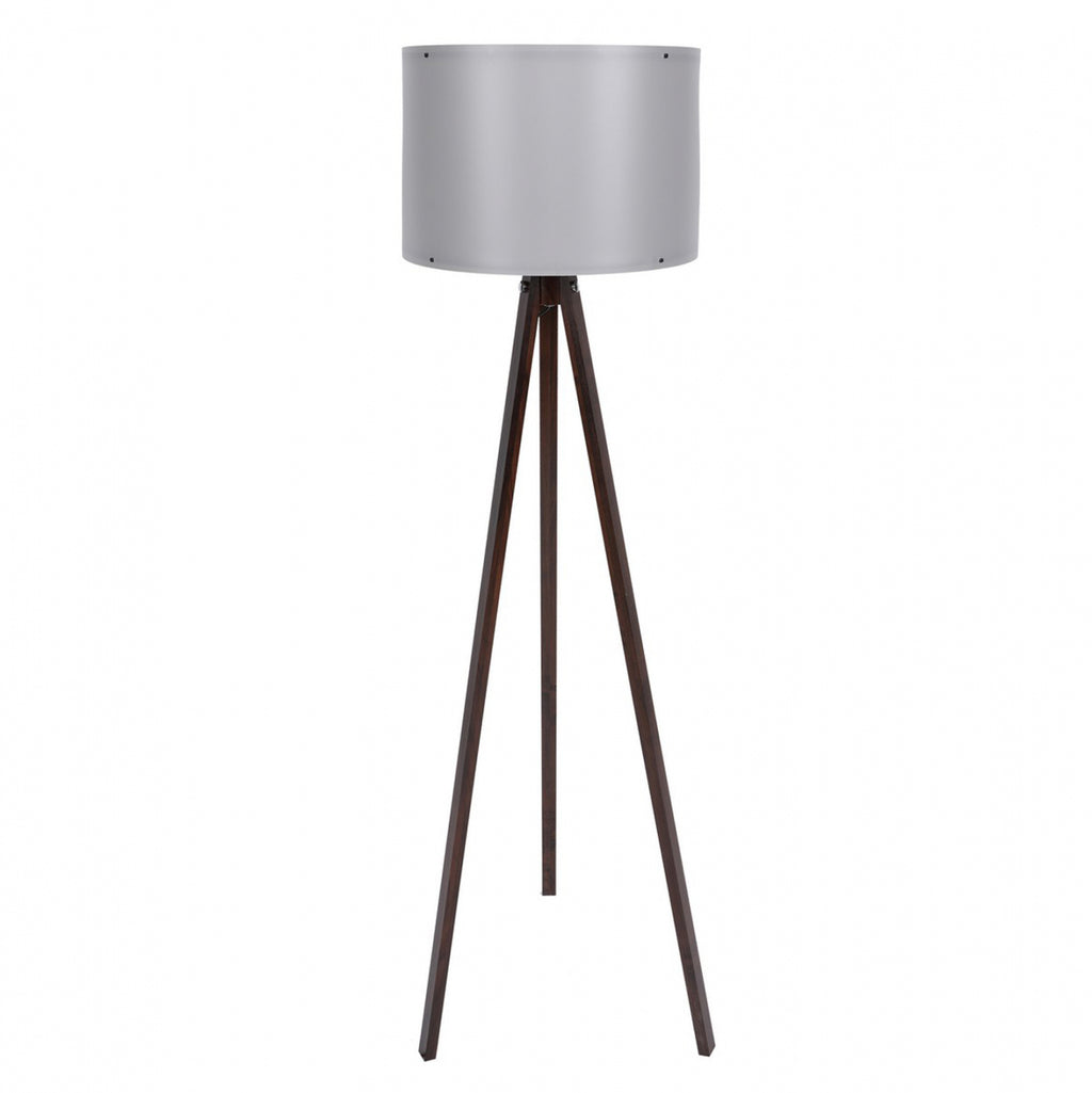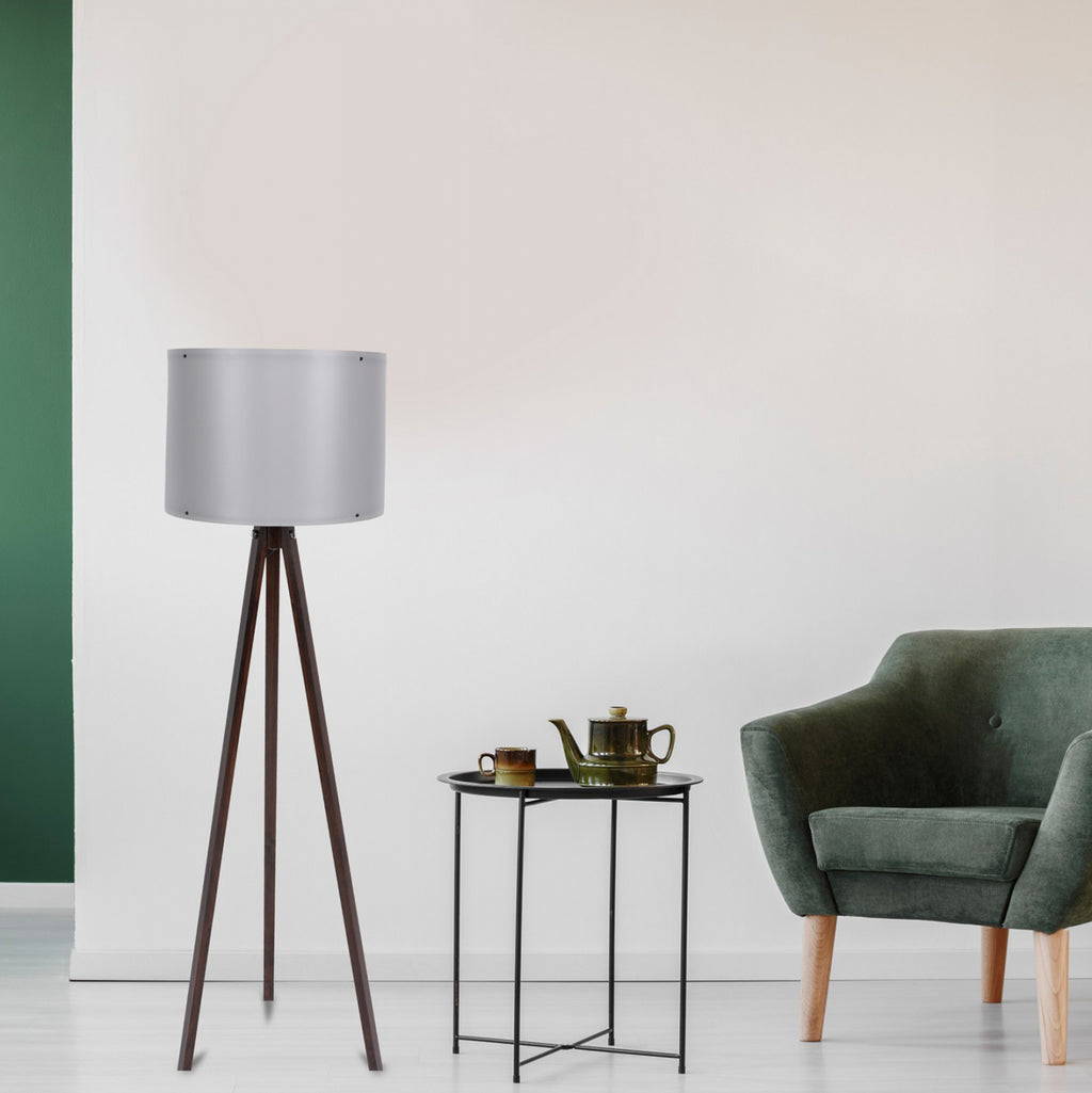 Модерна подова лампа, с високи крака и специална капачка, която хармонично разпръсква светлината във всяко пространство, където е поставена. Красив, семпъл дизайн с фин двуцветен цвят. Рамка от подсилени MDF крака, изключително устойчиви на износване, в цвят орех и полипропиленова капачка в сив цвят. Приема 1 крушка E27 до 45 - 60 W, която не е включена в опаковката. Подходящ за всички зони на дома или работното място. Размери: Φ38x145 см. Цвят на рамката: Орех Цвят на шапката: Сив Височина на шапката: 25см. Диаметър на шапката: 38 см. Височина на крака: 120 см. Обща височина: 145 см. Дължина на кабела: 200 см. Стил на осветлението: Модерно от европейско производство и произход. Продуктът се предлага във фабрична опаковка.