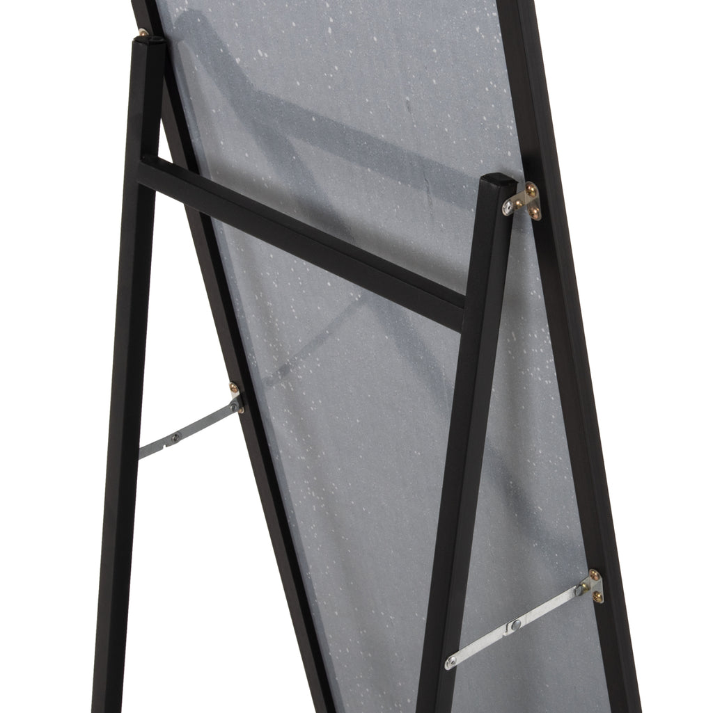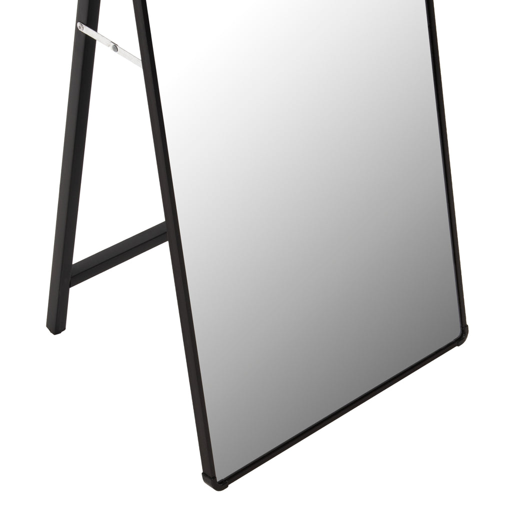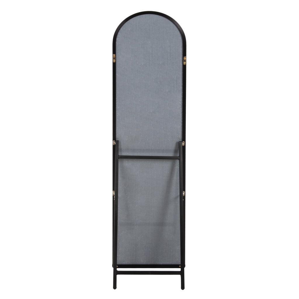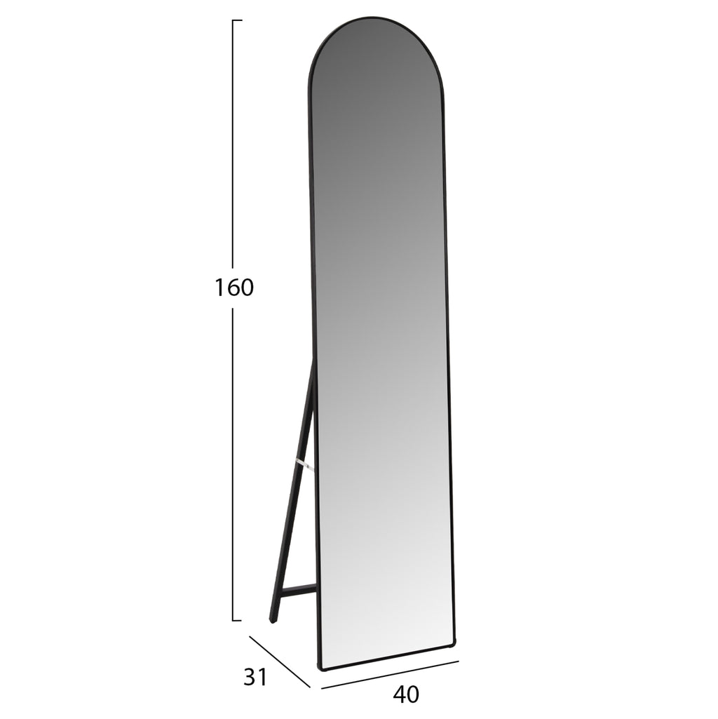 JOELY е подово огледало с ЧЕРНА рамка, елегантно и с много задоволително измерение. Полезен „инструмент“ за всяка спалня, който ще пасне на вашия интериор, независимо дали е класически или по-модерен. Подпората е направена със сгъваема алуминиева конструкция. Огледалото в горната му част има дъгообразен дизайн.