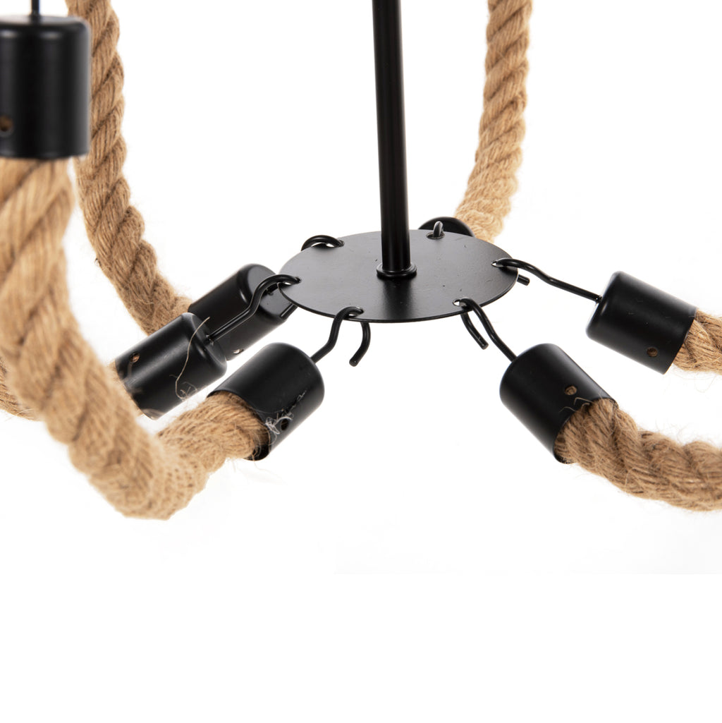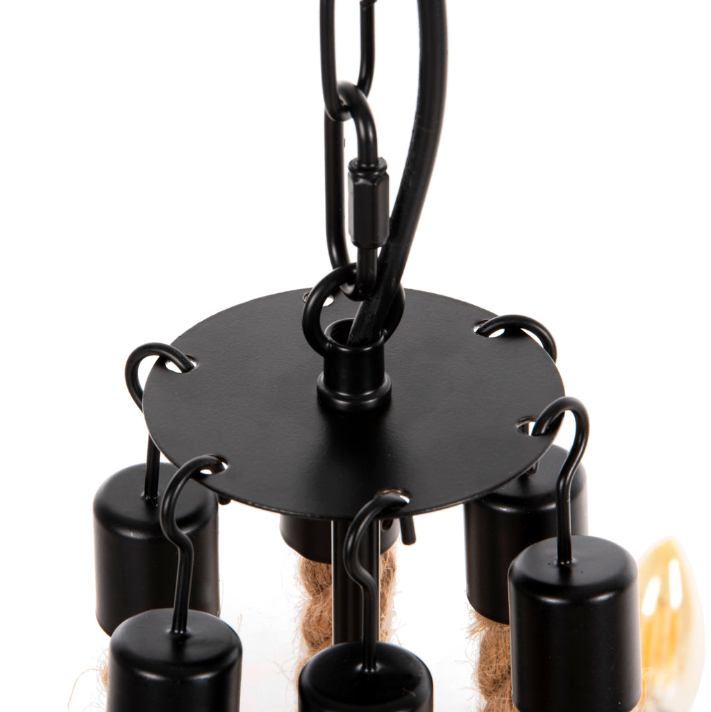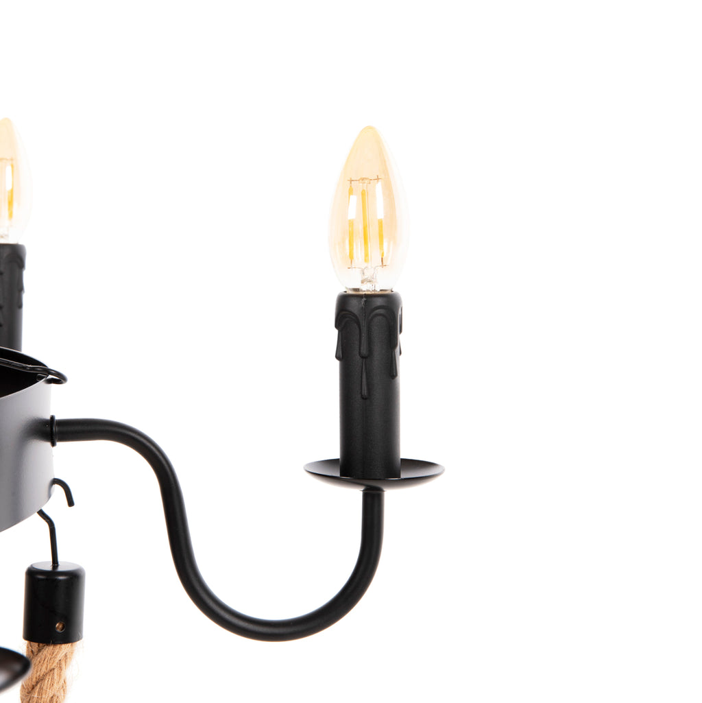 Многосветлият MH4177 е друго впечатляващо допълнение към нашата гама. Неговата черна метална рамка е кръгла и виси на верига от тавана. 6-те светлини под формата на свещници са монтирани върху кръглата рамка, а изображението се допълва от въжетата, които придават на лампата усещането за полилей. Тази многофункционална лампа ще освети големи пространства с много светлина и ще впечатли с красивия си дизайн. ТЕХНИЧЕСКИ ХАРАКТЕРИСТИКИ: Цокъл на крушката: E27 Цокъл с обикновена крушка Тип на крушката: Препоръчително е да се използва LED 20w Размери: 74x74x123H cm. CE сертифицирана ПОДДРЪЖКА: Най-важното нещо за тази конкретна лампа е нейното редовно почистване от прах. Ако имате време, разбира се, използвайте влажна кърпа и я направете да изглежда като нова. * Продуктът се доставя във фабрична опаковка, без крушки **Точното цветопредаване на продукта може леко да се различава от действителния продукт поради различните настройки на всеки монитор. ***Продуктът не е разглобен и се нуждае от сглобяване.