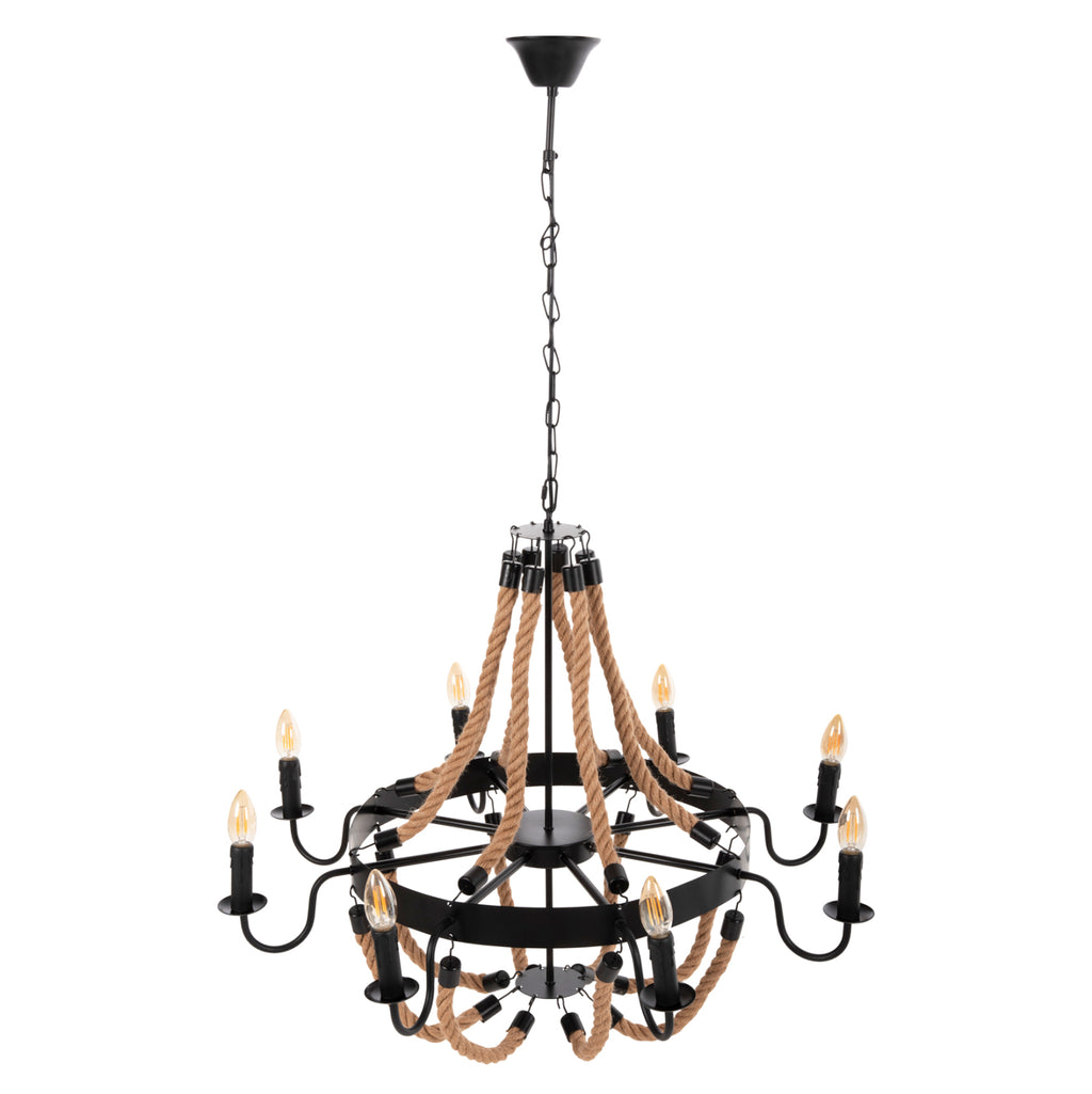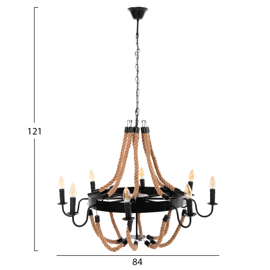 Многосветлинният MH4178 е друго впечатляващо допълнение към нашата гама. Неговата черна метална рамка е кръгла и виси на верига от тавана. 8-те светлини под формата на свещници са монтирани върху кръглата рамка, а изображението се допълва от въжетата, които придават на лампата усещането за полилей. Тази многофункционална лампа ще освети големи пространства с много светлина и ще впечатли с красивия си дизайн. ТЕХНИЧЕСКИ ХАРАКТЕРИСТИКИ: Цокъл на крушка: E27 Цокъл с обикновена крушка Тип на крушката: Препоръчително е да се използва LED 20w Размери: 84x84x121H cm. CE сертифицирана ПОДДРЪЖКА: Най-важното нещо за тази конкретна лампа е нейното редовно почистване от прах. Ако имате време, разбира се, използвайте влажна кърпа и я направете да изглежда като нова. * Продуктът се доставя във фабрична опаковка, без крушки **Точното цветопредаване на продукта може леко да се различава от действителния продукт поради различните настройки на всеки монитор. ***Продуктът не е разглобен и се нуждае от сглобяване.