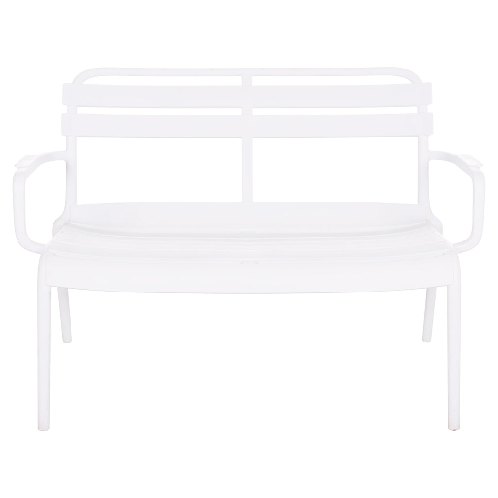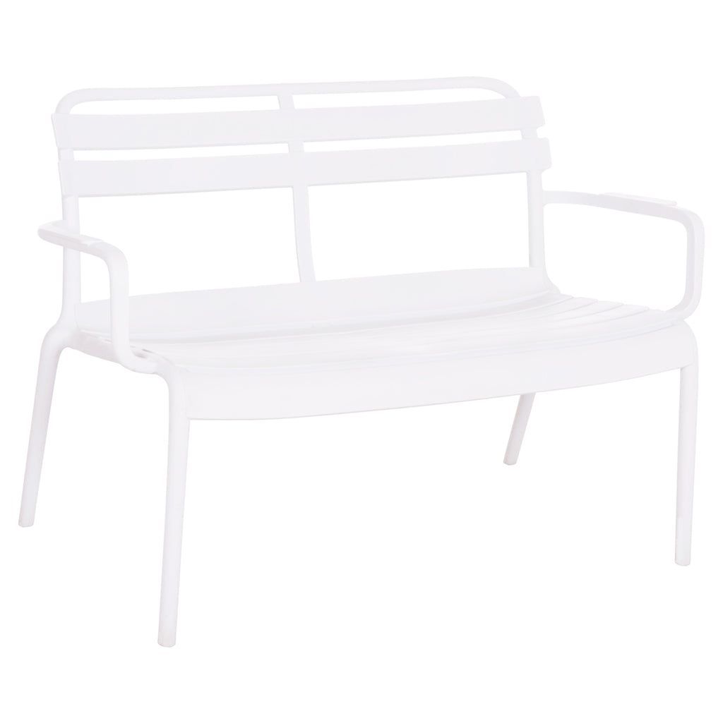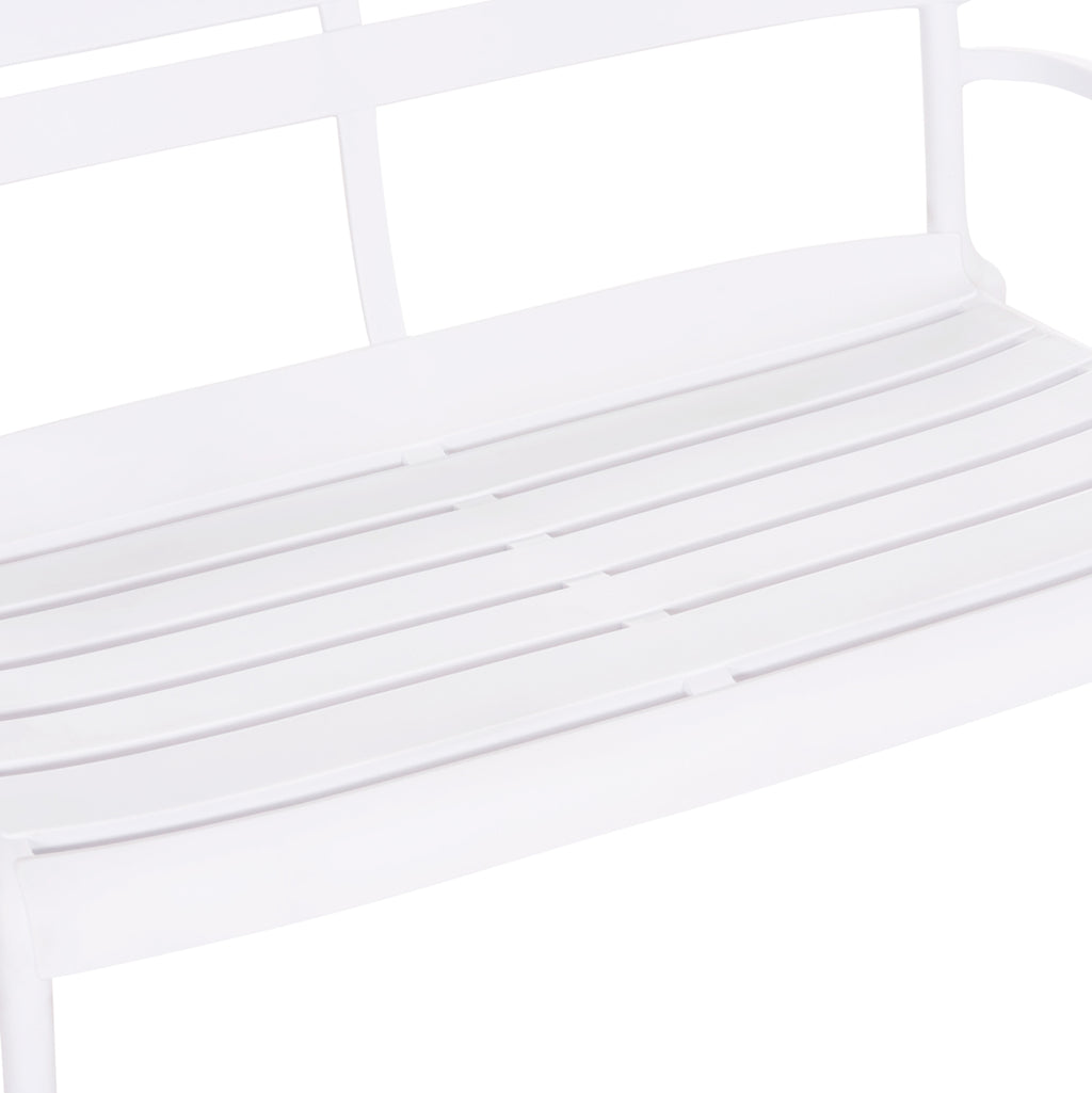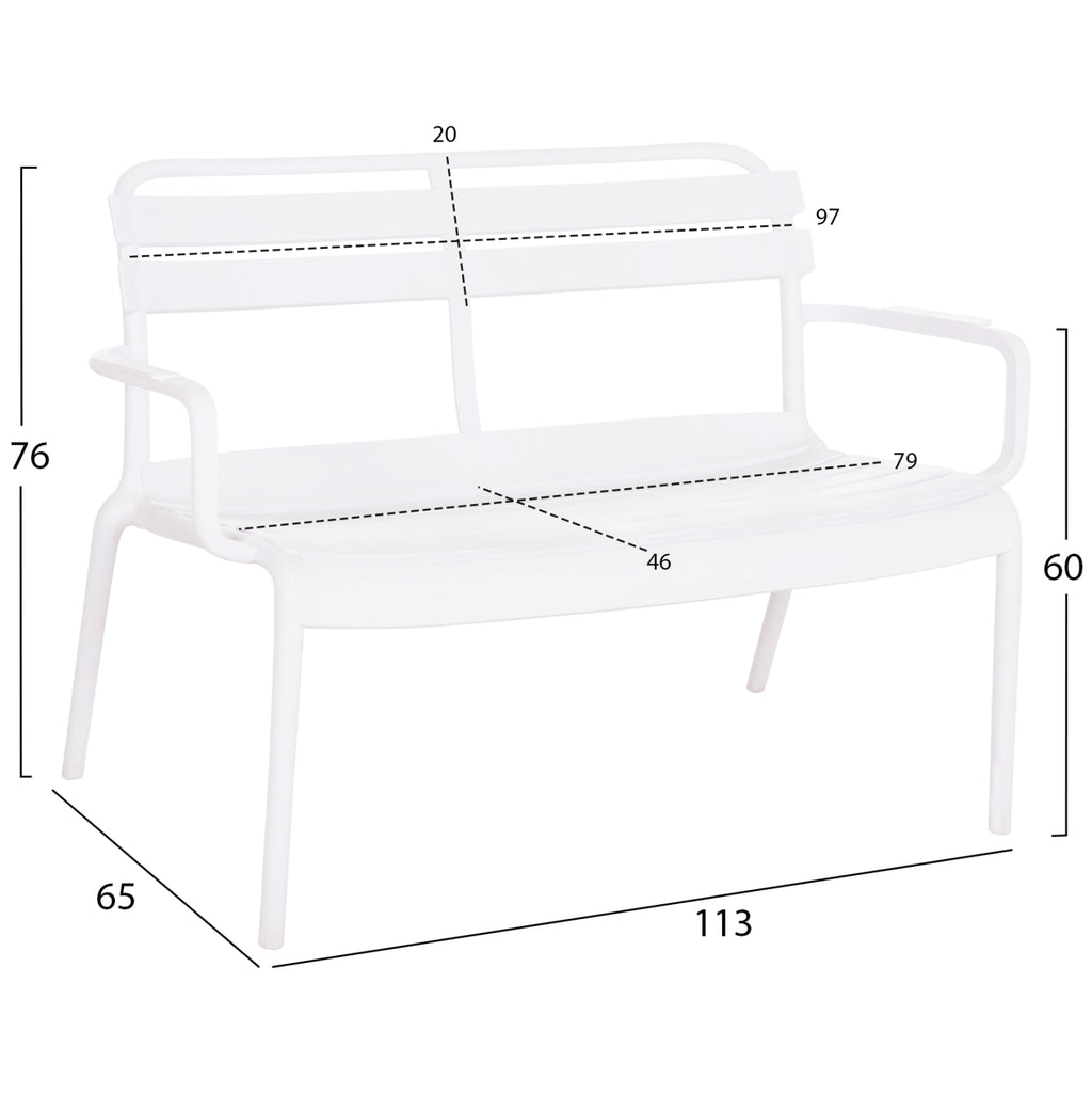 Двуместната външна пейка KORVER е изцяло изработена от полипропилен в БЯЛ цвят. Дизайнът е прост, с красиви извивки, с гръб и ръце и може да се използва по много начини, предлагайки практична и издръжлива употреба. Идеално предложение за използване във външни пространства, независимо дали професионални (банкетни зали, кетъринг компании и др.) или за дома. РАЗМЕРИ: 113x65x76H см. Размери на седалката: 79х46 см. Размери на гърба: 97х20см. Височина на ръцете: 60см. Височина на седалката: 43 см. Разстояние между краката: 97х57 см. МАТЕРИАЛИ НА КОНСТРУКЦИЯТА: Пейката е изработена от 100% висококачествен полипропилен. Полипропиленът е особено устойчив на тегло и вода, като същевременно има голяма устойчивост на температури до 125 градуса по Целзий. Освен това неговата издръжливост не се ограничава до тегло, вода и температура, но е необичайно устойчив на много химически разтворители и киселини. ПОДДРЪЖКА: Мебелите от полипропилен се почистват лесно с влажна кърпа. Ако са на открито, могат да се почистват директно с течаща вода. С ПОГЛЕД: •Леко тегло •Лесна поддръжка •МОЖЕ ДА СЕ СТЕПИРА ** Цветопредаването на продукта може леко да се различава от фотографското представяне на вашия екран.