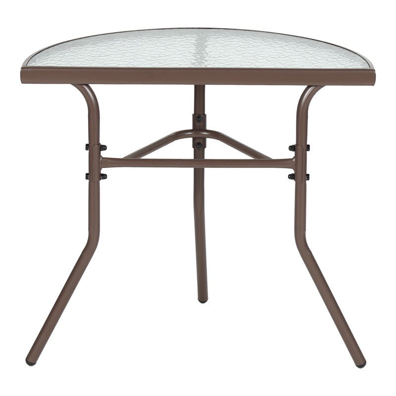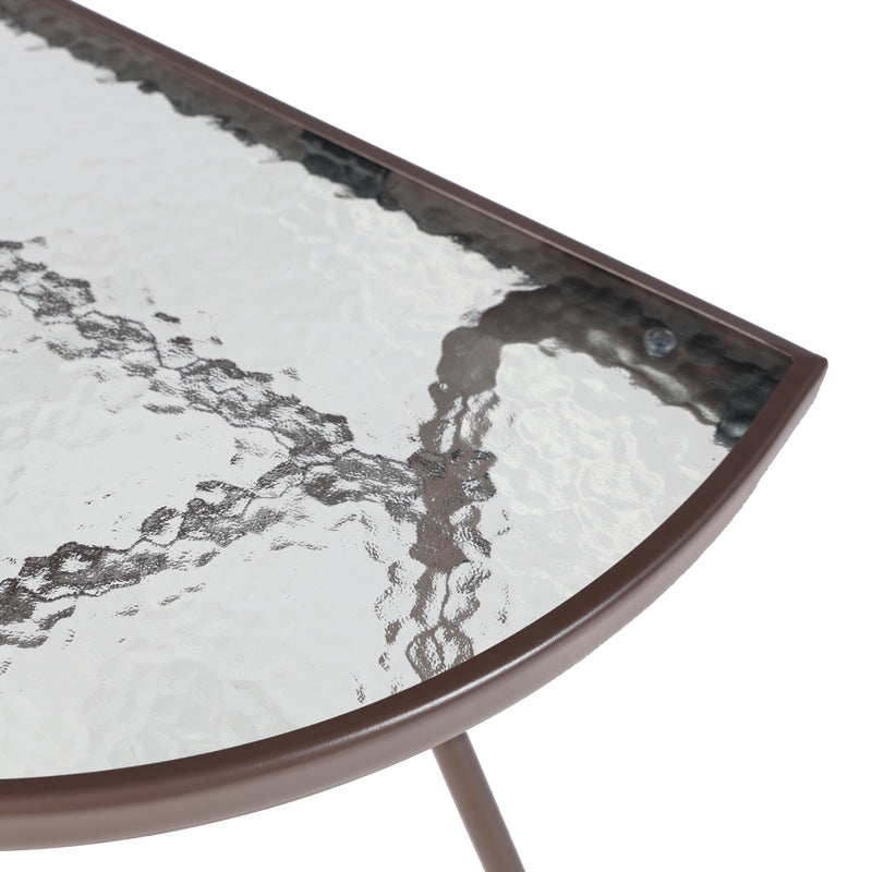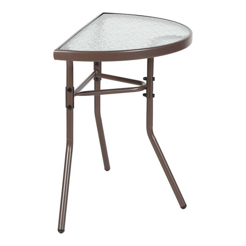Превърнете малкия си балкон в любимия си кът за релакс! Полукръглата маса Bion е перфектната комбинация от стил и функционалност. Интелигентният ѝ дизайн ви позволява да я поставите директно до стената, създавайки приветливо място за сутрешното ви кафе или вечерна напитка, без да жертвате ценно пространство. Здравата ѝ конструкция с метална рамка и стъклен плот я прави идеална за целогодишна употреба.