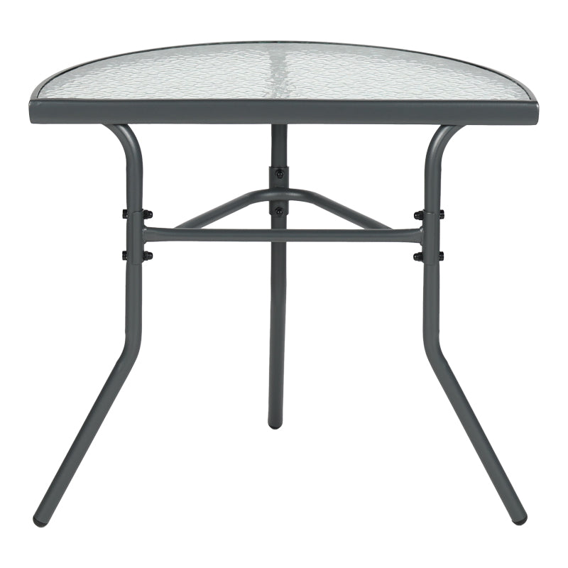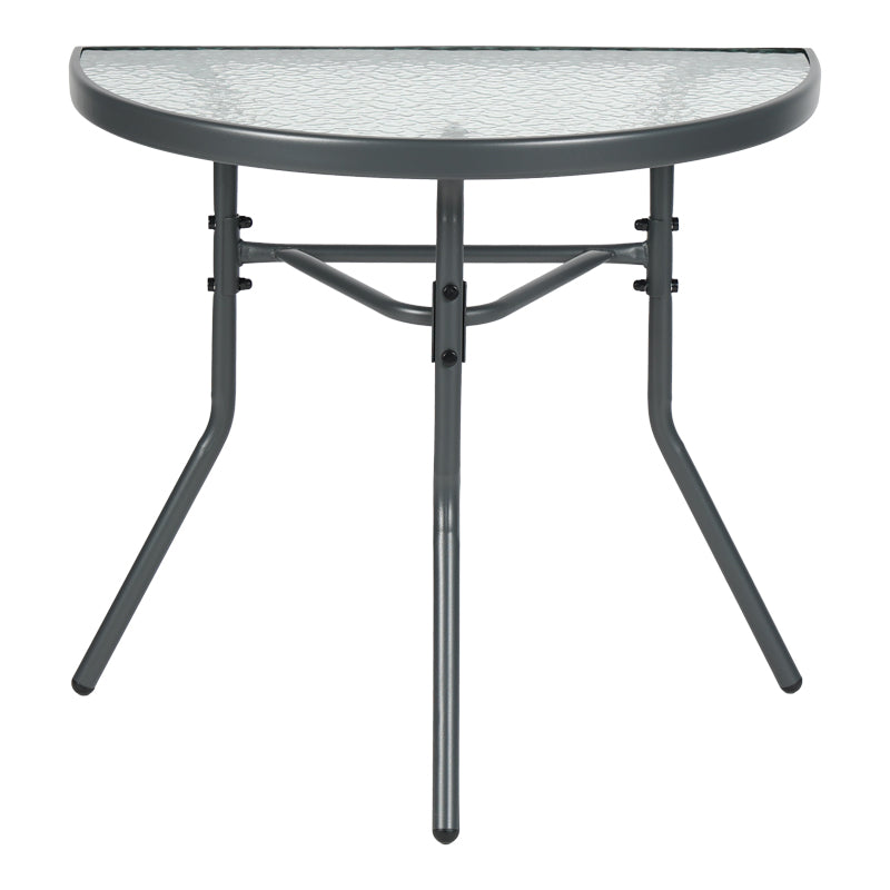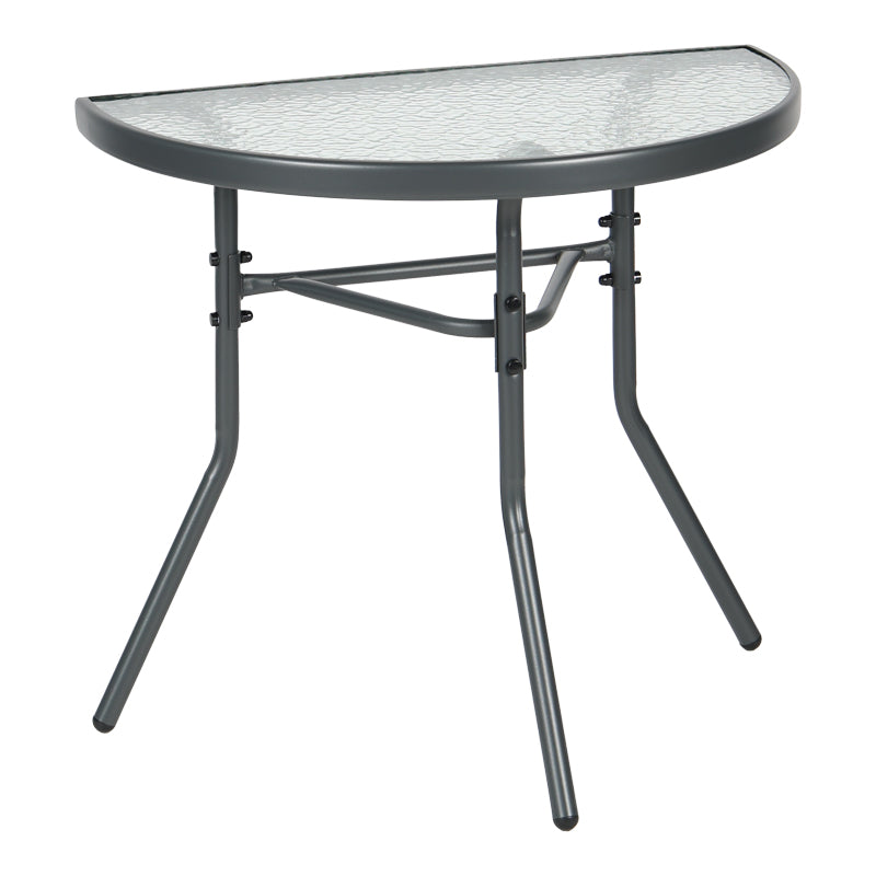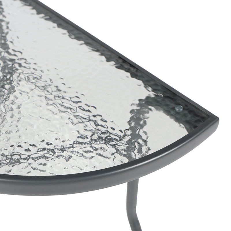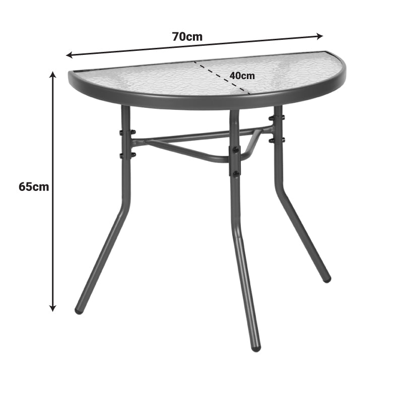 Превърнете малкия си балкон в любимия си кът за релакс! Полукръглата маса Bion е перфектната комбинация от стил и функционалност. Интелигентният ѝ дизайн ви позволява да я поставите директно до стената, създавайки уютно място за сутрешното ви кафе или вечерна напитка, без да жертвате ценно пространство. Благодарение на здравата си конструкция с метална рамка и стъклен плот, тя е идеална за целогодишна употреба.