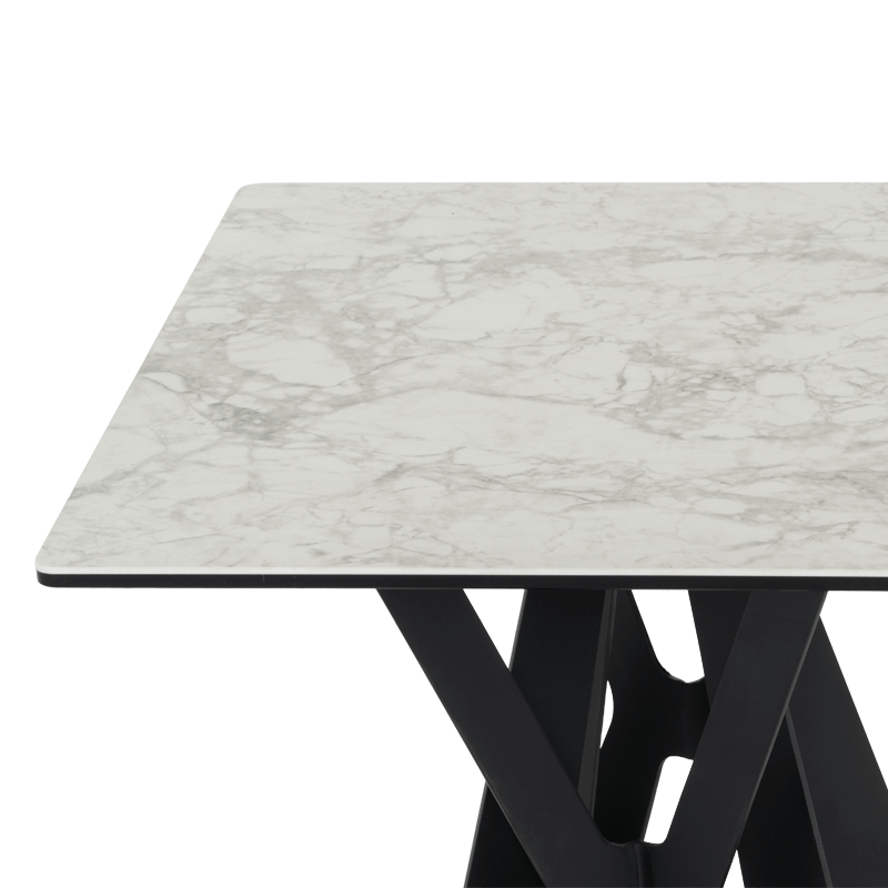 Помощната маса GUBIN впечатлява със съвременния си дизайн и практични размери. Плотът с дебелина 12 мм комбинира 8 мм закалено стъкло с 4 мм керамичен завършек, създавайки здрава и стилна повърхност, която е идеална за ежедневна употреба. Основата от праховобоядисан метал се откроява със своята геометрична структура и съвременен черен матов цвят, добавяйки изтънчен акцент към всяко пространство. С компактните си размери от 50 см дължина, 50 см ширина и 55 см височина, GUBIN е универсално решение, което носи удобство и елегантност във всяка стая. Пълна информация за размерите и характеристиките на модела ще намерите в таблицата в таб/поле "Техническа информация".