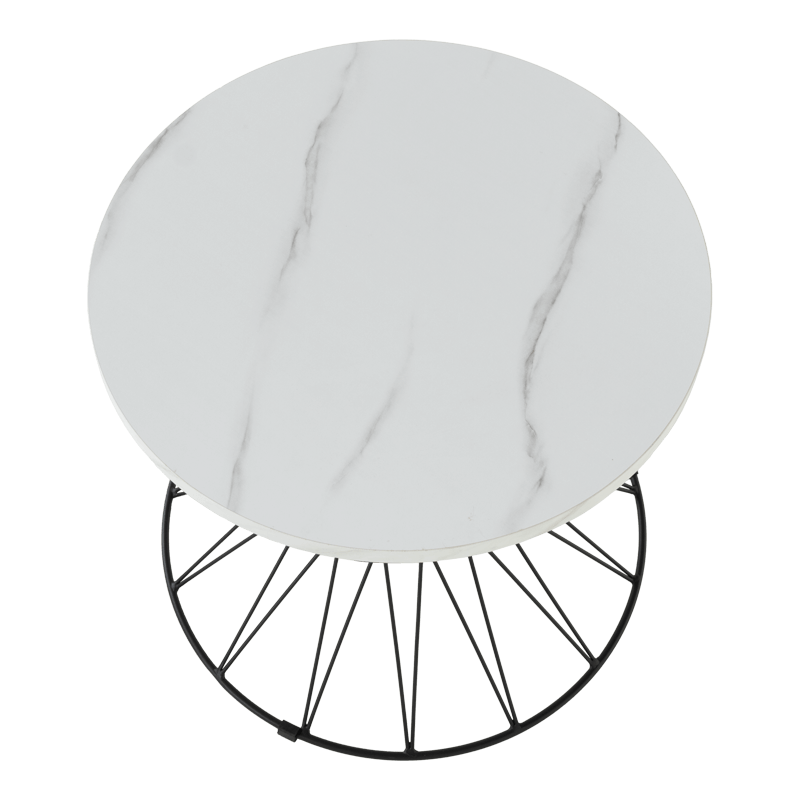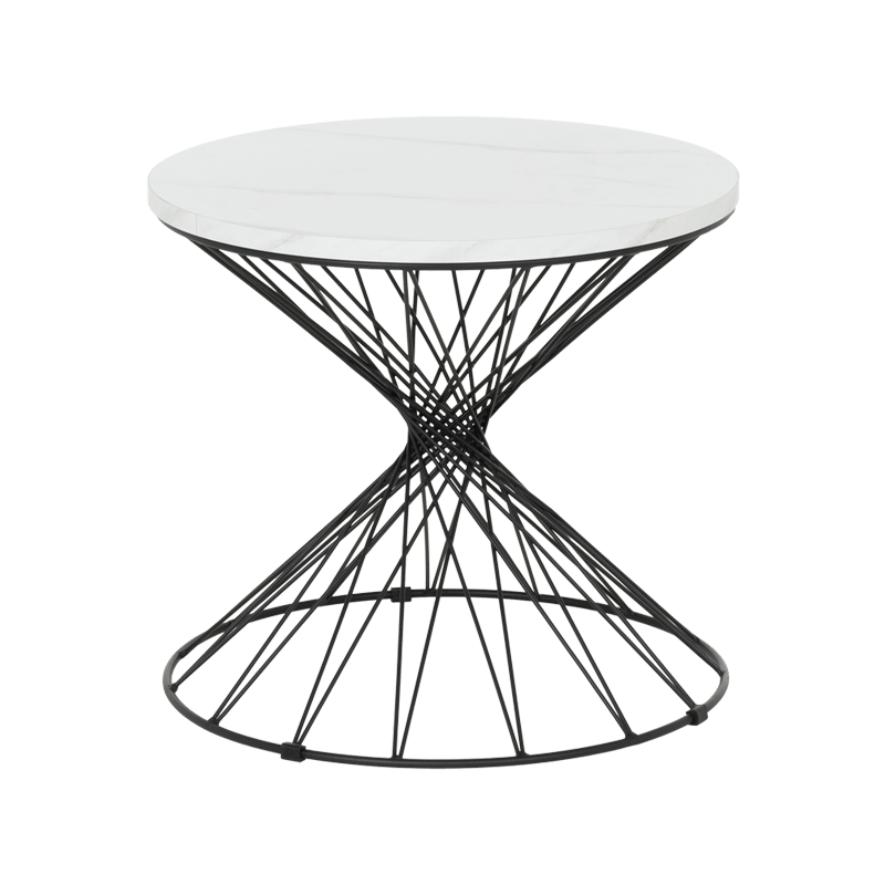 Помощната маса HENAN е стилен акцент, който ще добави елегантност и модерен характер на всеки интериор. Белият плот с мраморен ефект от МДФ и меламин придава изисканост, а интересната основа от прахобоядисан метал добавя артистичен акцент. Компактните ѝ размери я правят изключително удобна – идеална за малки вещи до дивана или за оформяне на уютен кът за четене. Пълна информация за размерите и характеристиките на модела ще намерите в таблицата в таб/поле „Техническа информация“.