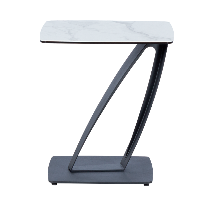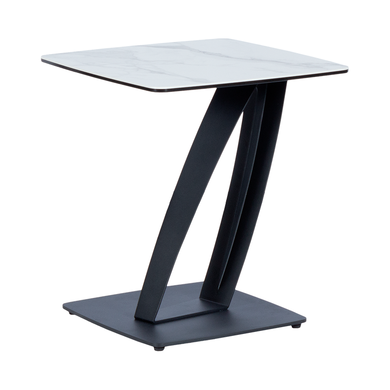 Помощната холна маса TORUN E 2 впечатлява с елегантен и модерен дизайн. Плотът, изработен от 12 мм комбинация от закалено стъкло и керамика, се отличава с изтънчен мраморен ефект и здравина. Основата от праховобоядисан метал в черен матов финиш допълва визията със своята динамична форма и стабилност, създавайки стилен акцент за всяка модерна всекидневна. Пълна информация за размерите и характеристиките на модела ще намерите в таблицата в таб/поле "Техническа информация".