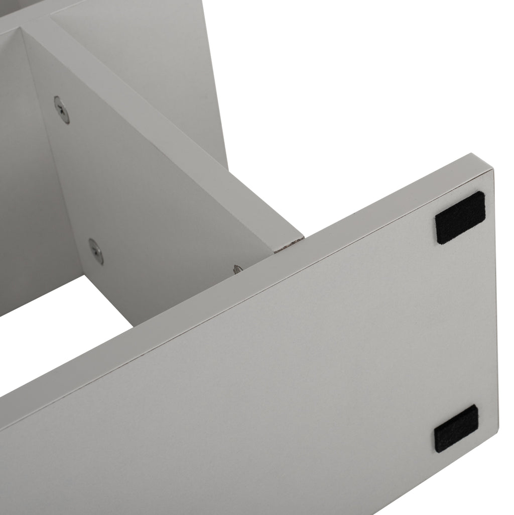 ΜΜ8956.13 СТРАНИЧНА МАСА----- Открийте меламиновата помощна маса AMABELLA, която ще промени облика на всяко пространство. Освен основната си употреба като масичка за кафе, тя има и отворени пространства за поставяне на предмети в кубична подредба, което я прави особено практична. БЕЛИЯТ цвят на мебелите е приятен и пасва почти навсякъде. РАЗМЕРИ: 45x17x52H см. Размери на рафт А: 33x17x23.5H см. Размери на рафт B: 9x17x23.5H см. МАТЕРИАЛИ ЗА ИЗРАБОТКА: Холната маса е изработена от висококачествен меламин с дебелина 15 мм. Меламинът е вид дървесина под формата на ПДЧ (панел). Като материал е много издръжлив и с голяма твърдост. Така че това е синтетичен материал с много твърда повърхност, което го прави много устойчив на драскотини, абразия и петна. ПОДДРЪЖКА: Меламинът, който е строителният материал, се почиства много лесно от петна благодарение на твърдата си повърхност. Можете да забършете всички повърхности с влажна кърпа и това е достатъчно, за да изглежда холната ви маса отново като нова. За упорити петна можете да използвате мек почистващ препарат. Продуктът се доставя без поръчка