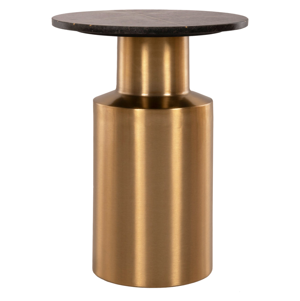 Красивата странична маса CLAYDEE е едно от новите попълнения в нашата гама. Тя е много специална кръгла маса с цилиндрична метална основа в ЗЛАТИСТ цвят. Повърхността е изработена от ЧЕРЕН мрамор с издълбани (релефни) линии в ЗЛАТИСТ цвят. Комбинацията е наистина нещо уникално и впечатляващо. Тази техника на естетическо обогатяване на мрамора произхожда от Азия и добавя лукс и добавена стойност към мрамора. Идеална както за дома, така и за професионални пространства. РАЗМЕРИ: Φ41x54.5H см. МАТЕРИАЛИ ЗА СТРОИТЕЛСТВО: Основата е изработена от поцинкован метал за още по-добър естетически резултат и издръжливост във времето. Повърхността е изработена от специално "обработен" естествен мрамор. ПОДДРЪЖКА: Мраморът се почиства лесно с влажна кърпа. В случай на петна, трябва да го избършете бързо, преди петното да "накисне" мрамора. Основата се почиства по същия начин. *Масата се доставя несглобена във фабрична опаковка. ** Цветопредаването на продукта може леко да се различава от фотографското му представяне на вашия екран. "Търговска марка"