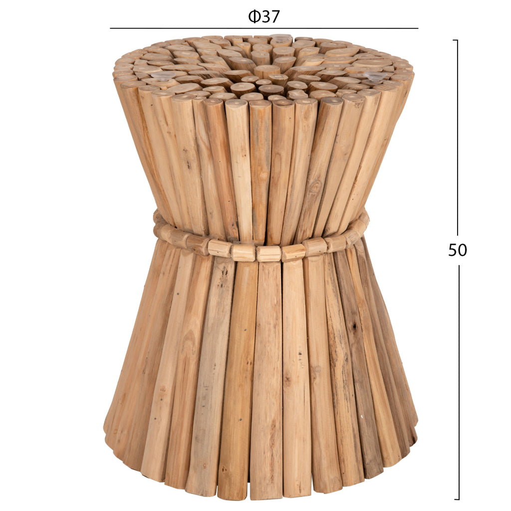 Представяме ви прекрасната холна маса COOTER. Представлява кръгла маса, изработена от естествени парчета (клони) от качествено ТИКОВО дърво без крака. Визуално има формата на букет от дърво, вързан в средата също с дървена верига. Няма стъклена повърхност. РАЗМЕРИ: Φ37x50H см. * Съществуващите пукнатини или такива, които могат да се появят с течение на времето се дължат на свиването-разширяването на живия организъм, наречен масивна дървесина, а не са производствен дефект, придавайки оригиналност и уникален дизайн на вашето пространство. Поради това може да има цветови вариации и разлики в размерите на продукта поради размерите на обработената дървесина. Това не са дефект на продукта. КОНСТРУКТИВНИ МАТЕРИАЛИ: Масата е изработена от няколко парчета (клонки) от ТИКОВО дърво. Тикът е най-популярният вид твърда дървесина. Той е жълт до тъмно кафяв на цвят, изключително тежък, с висока якост, устойчив на атмосферни влияния, устойчив на стружки и не се разлага. Често водите на дървото му са силни и прави. Използва се за много вътрешни и външни конструкции. ПОДДРЪЖКА: Фактът, че ТИК е част от твърдата дървесина, го прави много лесен за поддръжка. Всичко, от което се нуждае, е почистване от прах и при необходимост почистване с влажна кърпа. *Масата се предлага без стъклен плот