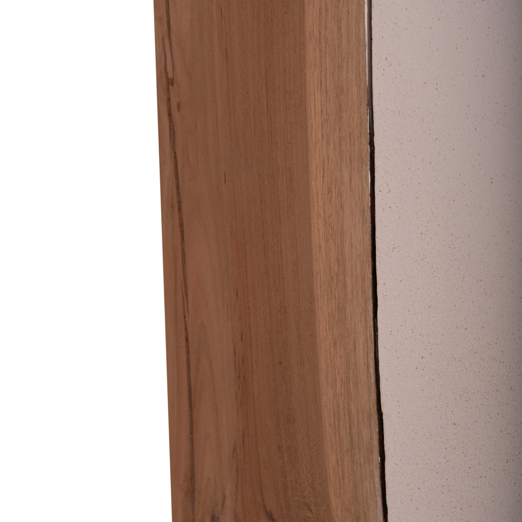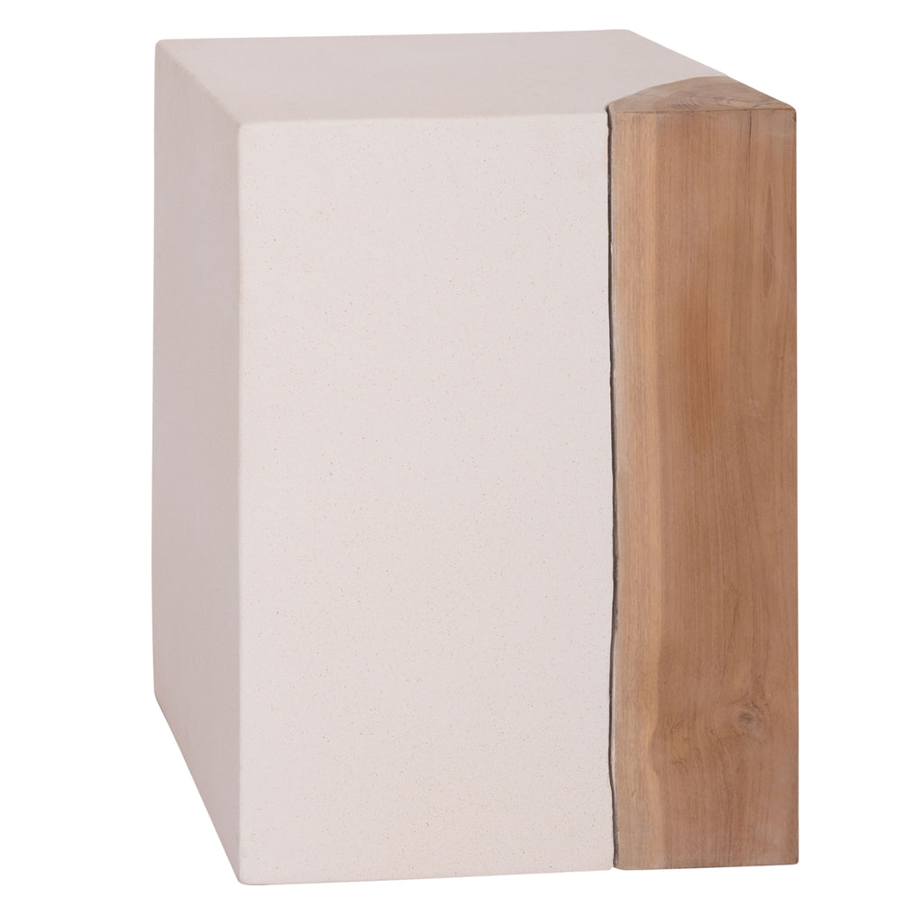 Ръчно изработената квадратна странична маса LEIA е изработена от фиброцимент в БЯЛ цвят, докато единият ъгъл е изработен от качествено тиково дърво, предлагащо красив двуцветен цвят и уникална комбинация от материали и текстури. Той е идеално допълнение както за дома, така и за професионални пространства, като хотели, AirBnB и др. **САМО ЗА ВЪТРЕШНА УПОТРЕБА** РАЗМЕРИ: 32.5x32.5x46H cm. СТРОИТЕЛНИ МАТЕРИАЛИ: Фиброциментът е композитен строителен материал, изработен от цимент, армиран с целулозни влакна. Известен е със своята издръжливост, устойчивост на гниене, вода и насекоми, което го прави избор с ниска поддръжка. Предимства: • Изисква минимална поддръжка и се почиства лесно. • Не е запалим. • Устойчивост на гниене и вредители. ПОДДРЪЖКА: Едно почистване с прах обикновено е достатъчно, но избягвайте използването на химически почистващи препарати. ** Цветопредаването на продукта може леко да се различава от неговото фотографско представяне на вашия екран.