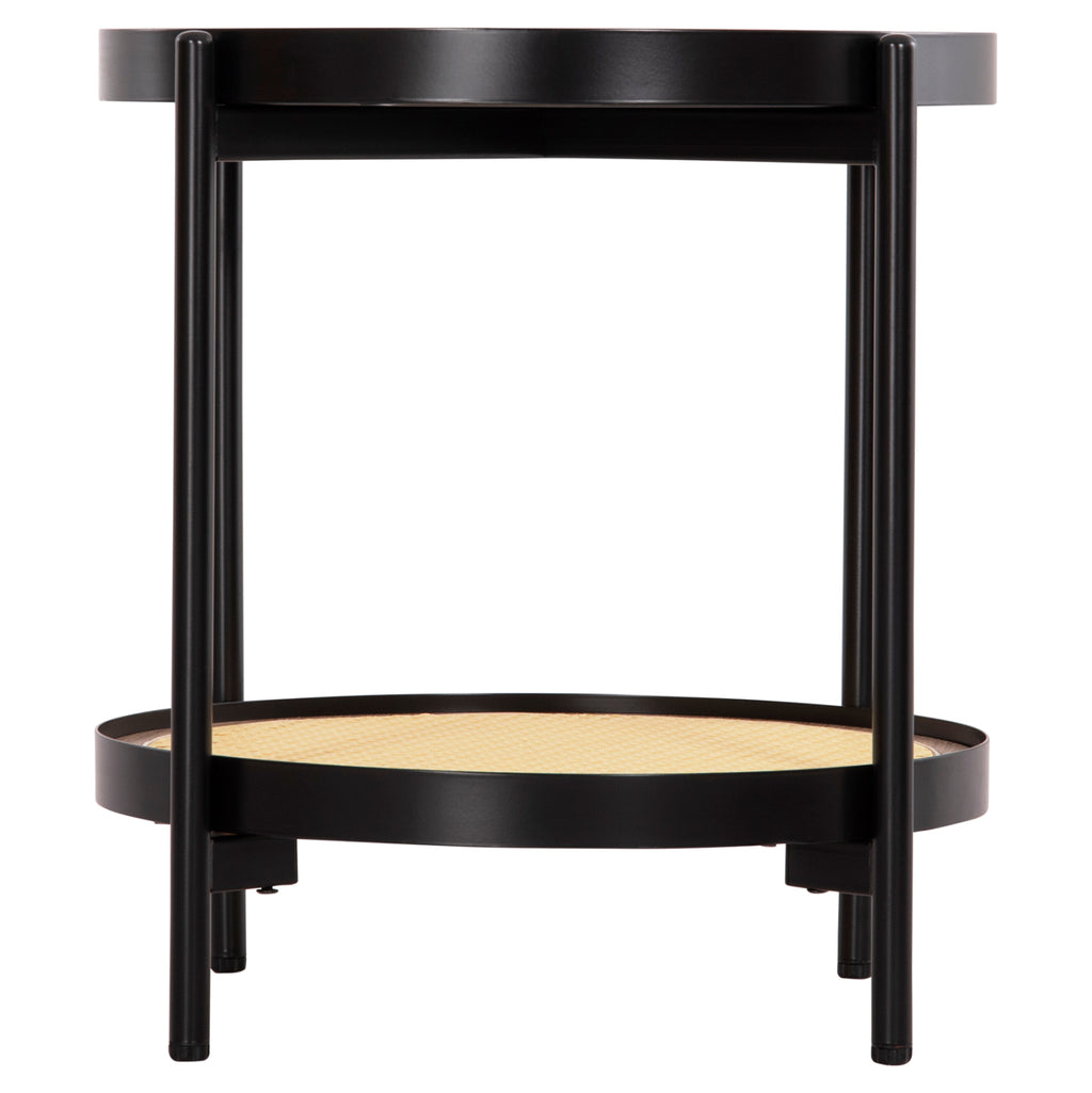 SEITZ е красива и сравнително висока кръгла помощна маса. Характерното за него е, че има 2 повърхности, които лежат върху ЧЕРНИ метални кръстосани основи. Горната повърхност е изработена от стъкло (безопасно стъкло) в ЧЕРЕН цвят, а долната е изработена от ратан в ракита в НАТУРАЛЕН цвят. Уникална маса, която съчетава практичност и лукс за вашето пространство. РАЗМЕРИ: Φ50x16.5-55.5H см. Разстояние на краката: 40-35.5x40-35.5см. Дебелина на стъклото: 6мм КОНСТРУКТИВНИ МАТЕРИАЛИ: Рамката е метална с електростатично боядисване. Електростатичното боядисване е процес на сухо покритие, използван като метално покритие. Електростатичното боядисване е нанасяне на сух прах чрез електростатичен процес, който след това се „свързва“ към метала чрез топлина. Долната повърхност е изработена от синтетичен ратан. Синтетичният ратан е изработен от висококачествени изкуствени влакна. Това дава отлична здравина и издръжливост. ПОДДРЪЖКА: Холната маса не се нуждае от специална поддръжка. Достатъчно е избърсване с влажна кърпа. * Холната маса се доставя в разглобен вид. **Точното цветопредаване на продукта може леко да се различава от действителния продукт поради различни настройки на монитора.