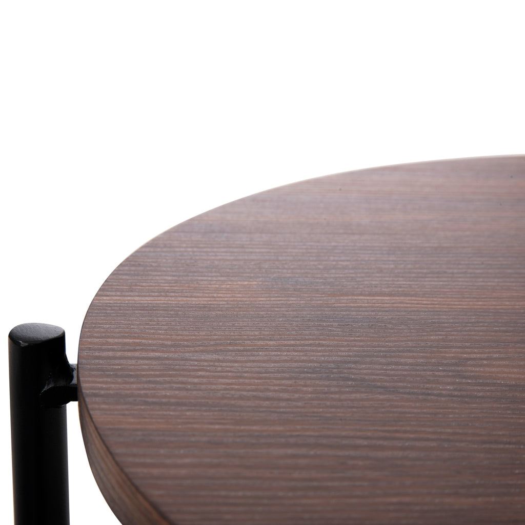 SYLO е много практична кръгла помощна маса на две нива. Тя лежи върху ЧЕРНА метална рамка, която служи и като дръжка за носене, така че можете да местите и поставяте масичката за кафе, където пожелаете. Цветът на повърхностите е ОРЕХ. РАЗМЕРИ: Φ44x66H см. Повърхност: Φ40см. Дебелина на повърхностите: 2см. Височина на крака: 11см. Височина на ниво: 13-41см. ИЗДЕЛНИ МАТЕРИАЛИ: Повърхностите са изработени от висококачествен MDF. MDF (влакна със средна плътност) е модерен потребителски материал, който много често се избира за различни интериорни приложения. Основните му характеристики са, че абсорбира минимална влага, има хомогенност в масата си, задоволителни механични свойства, отлична гладкост и много възможности за обработка. ПОДДРЪЖКА: Почистването на прах на редовни интервали и забърсването с влажна кърпа е достатъчно за поддръжка на масата. За повърхността, разбира се, можете да използвате и леки почистващи препарати на пазара. * Холната маса се доставя разглобена във фабрична опаковка. ** Цветопредаването на продукта може леко да се различава от неговото фотографско представяне на вашия екран.