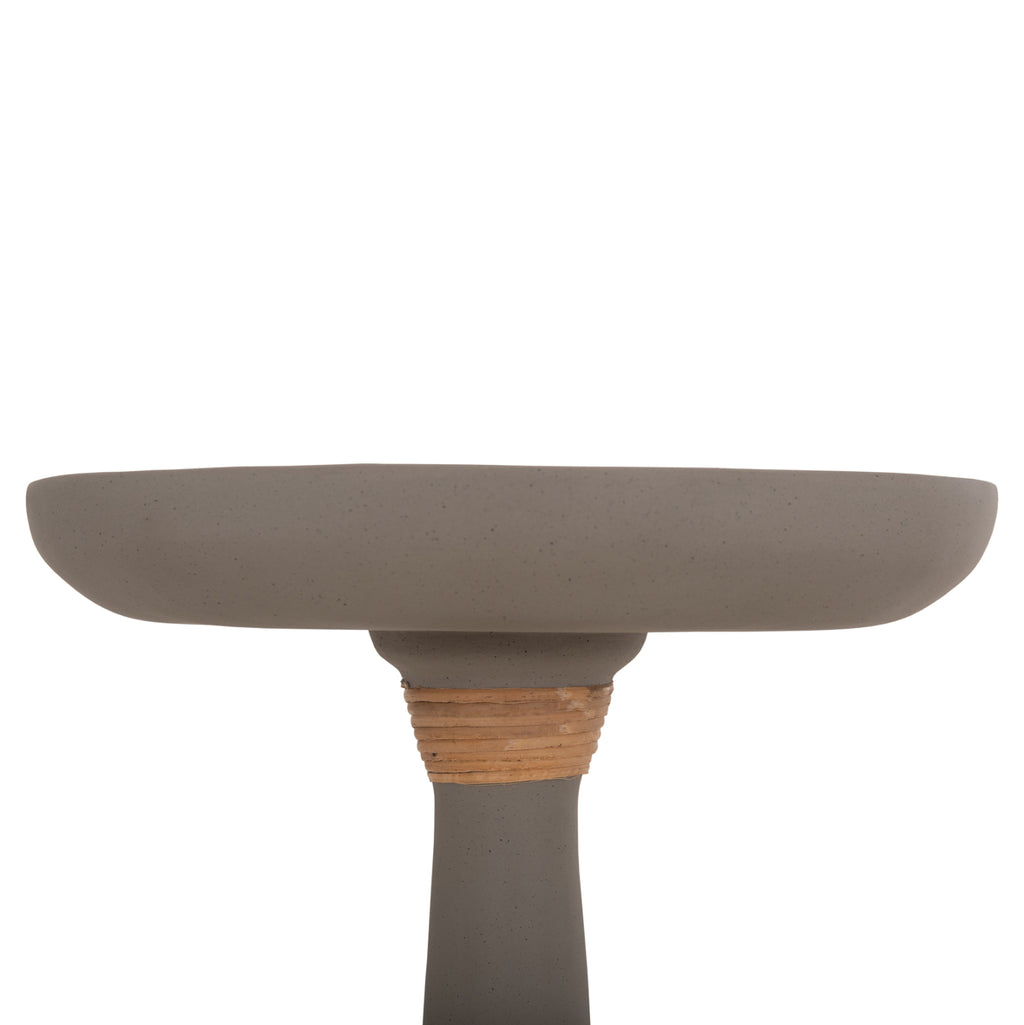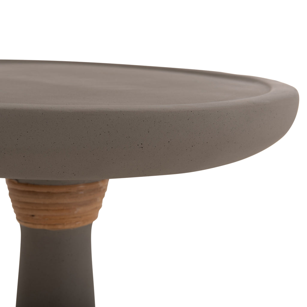 Το ψηλό βοηθητικό τραπέζι TORG είναι στρογγυλό και κομψό. Είναι κατασκευασμένο εξολοκλήρου από Fiber Cement σε ΓΚΡΙ χρώμα με σχοινί στον ψηλό λαιμό ως διακόσμηση και αποτελεί ιδανικό συμπλήρωμα τόσο για το σπίτι, όσο και για επαγγελματικούς χώρους, όπως ξενοδοχεία, AirBnB, κτλ. Μπορείτε να το χρησιμοποιήσετε ως τραπεζάκι-βάση για επιτραπέζιο φωτιστικό/λαμπατέρ δίνοντας μια διαφορετική εικόνα στον χώρο σας! **ΧΡΗΣΗ ΣΕ ΕΣΩΤΕΡΙΚΟΥΣ ΧΩΡΟΥΣ ΜΟΝΟ** ΔΙΑΣΤΑΣΕΙΣ: Φ41x62Υ εκ. Βάση: Φ23x55,5Υ εκ. Επιφάνεια: Φ41x6(πάχος) εκ. ΥΛΙΚΑ ΚΑΤΑΣΚΕΥΗΣ: Το Fiber Cement είναι ένα σύνθετο δομικό υλικό κατασκευασμένο από τσιμέντο ενισχυμένο με ίνες κυτταρίνης. Είναι γνωστό για την ανθεκτικότητά του, την αντοχή του στη σήψη, το νερό και τα έντομα, καθιστώντας το μια επιλογή χαμηλής συντήρησης. Πλεονεκτήματα: • Απαιτεί ελάχιστη συντήρηση και καθαρίζεται εύκολα. • Δεν είναι εύφλεκτο. • Αντοχή στη σήψη και τα παράσιτα. ΣΥΝΤΗΡΗΣΗ: Ένα ξεσκόνισμα συνήθως είναι αρκετό, αλλά αποφύγετε την χρήση χημικών καθαριστικών. ** Η χρωματική απόδοση του προϊόντος ενδέχεται να διαφέρει ελαφρώς από τη φωτογραφική του αναπαράσταση στην οθόνη σας.