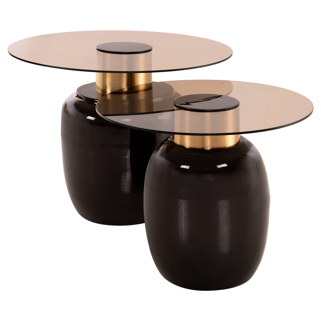 Холната маса FRYN от 2 е едно от новите попълнения в нашата гама. Това са 2 кръгли маси с цилиндрична основа и изработени от метал. Цветът им е КАФЯВ, а "шията" е златиста. Повърхностите са стъклени, като стъклото има светлокафяв оттенък. Особеността на тези маси са лъскавите повърхности, които придават усещане за чистота и лукс на вашия хол. Идеален както за дома, така и за бизнес помещения. РАЗМЕРИ: Височина: Φ60x46.5H см. Ниска: Φ50x40,5H cm. МАТЕРИАЛИ НА ИЗРАБОТКАТА: Комплектът е изработен от емайлиран метал. ПОДДРЪЖКА: Конструкционните материали и начинът на изработка с емайлиране позволяват лесна поддръжка на масите. Достатъчно е забърсване с влажна кърпа за полиране на масите. *Комплектът се доставя разглобен във фабрична опаковка ** Цветопредаването на продукта може леко да се различава от фотографското изображение на вашия екран.