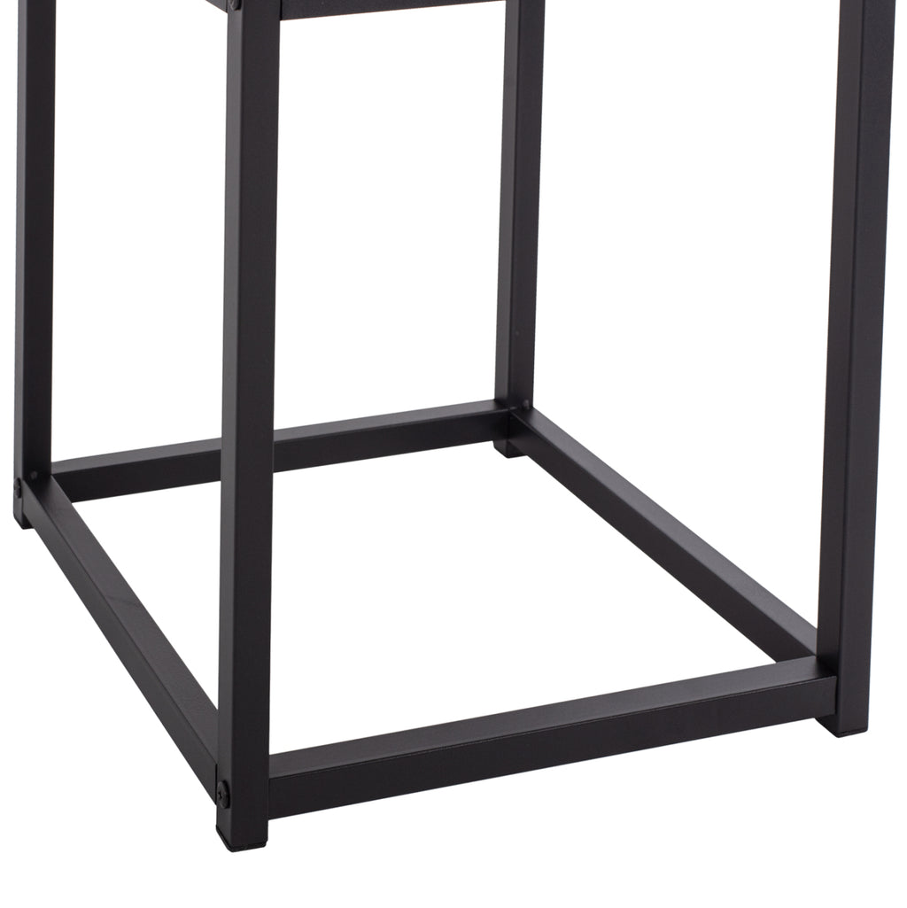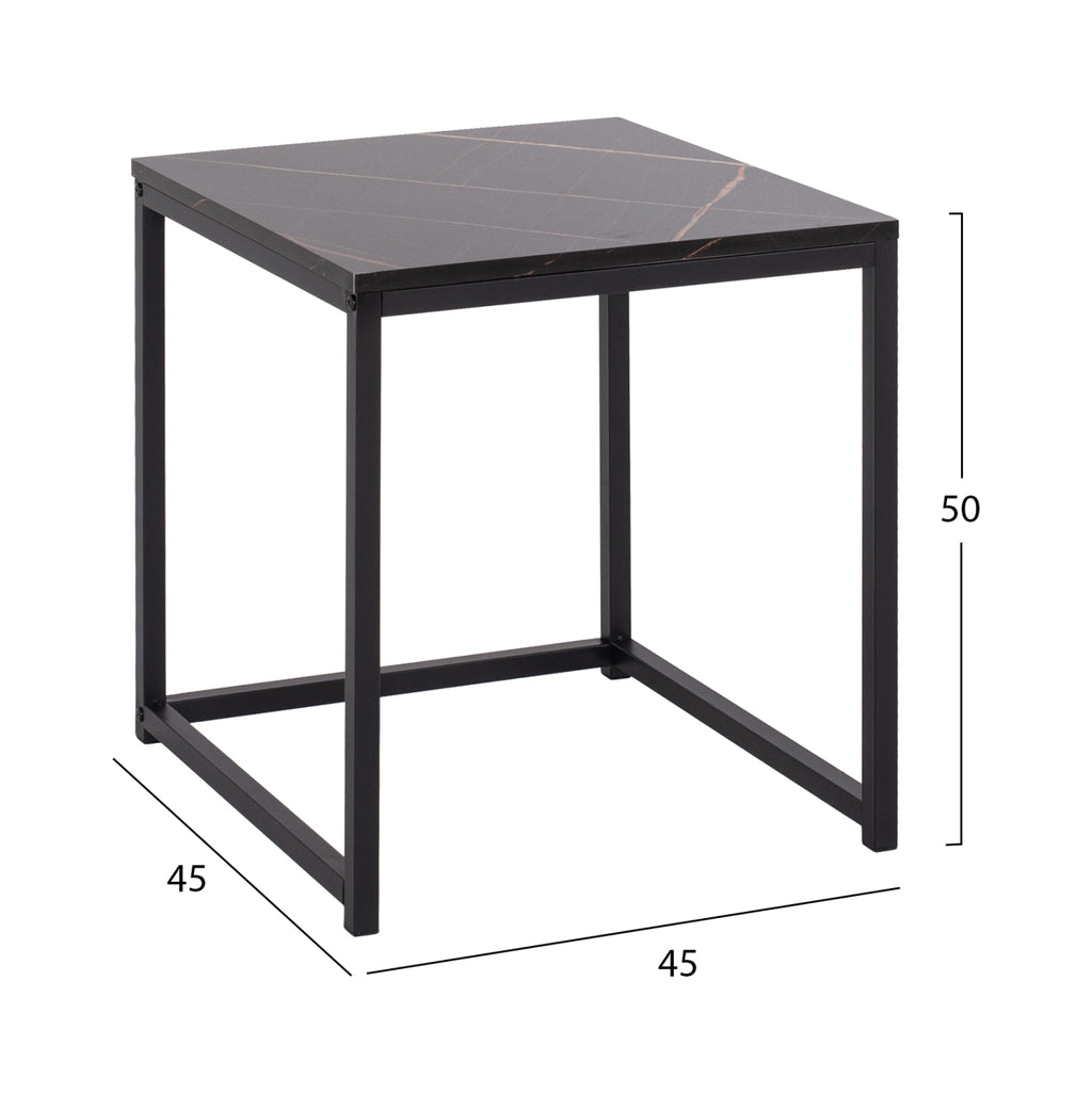 Холни маси ΜΜ8762.13----- Холните маси GRELAY ще ви зарадват със своя стил и практичност. Можете да създадете оригинални декоративни композиции, давайки нов живот на вашето пространство с този комплект. Това са 2 квадратни маси, една по-висока и една по-къса, която се съхранява под високата. Краката в стил база са метални в черно, а повърхностите им са имитация на черен мрамор от MDF. РАЗМЕРИ: Височина: 45x45x50H см. Къс: 37x37x43H см. Размери на метала: 20х20мм Дебелина на МДФ: 15мм МАТЕРИАЛИ НА ИЗРАБОТКА: Повърхностите на масите са изработени от висококачествен МДФ с меламиново покритие. МДФ (влакна със средна плътност) е модерен потребителски материал, който много често се избира за интериорни мебели. Основните му характеристики са, че абсорбира минимална влага, има хомогенност в масата си, задоволителни механични свойства, отлична гладкост и много възможности за обработка. Краката и основите на масите са изработени от метал с черна електростатична боя. Електростатичното боядисване е процес на сухо покритие, използван като метално покритие. Електростатичното боядисване е нанасяне на сух прах чрез електростатичен процес, който след това се „свързва“ към метала чрез топлина. ПОДДРЪЖКА: Както повърхността, така и краката се почистват лесно с влажна кърпа. ПРЕДИМСТВА: •Здрава конструкция •Качествени материали и методи на изработка •Естетически красиви маси •Практични за използване •Не заемат много място, тъй като едната влиза под другата •Имат защитна пластмаса на краката за защита на пода
