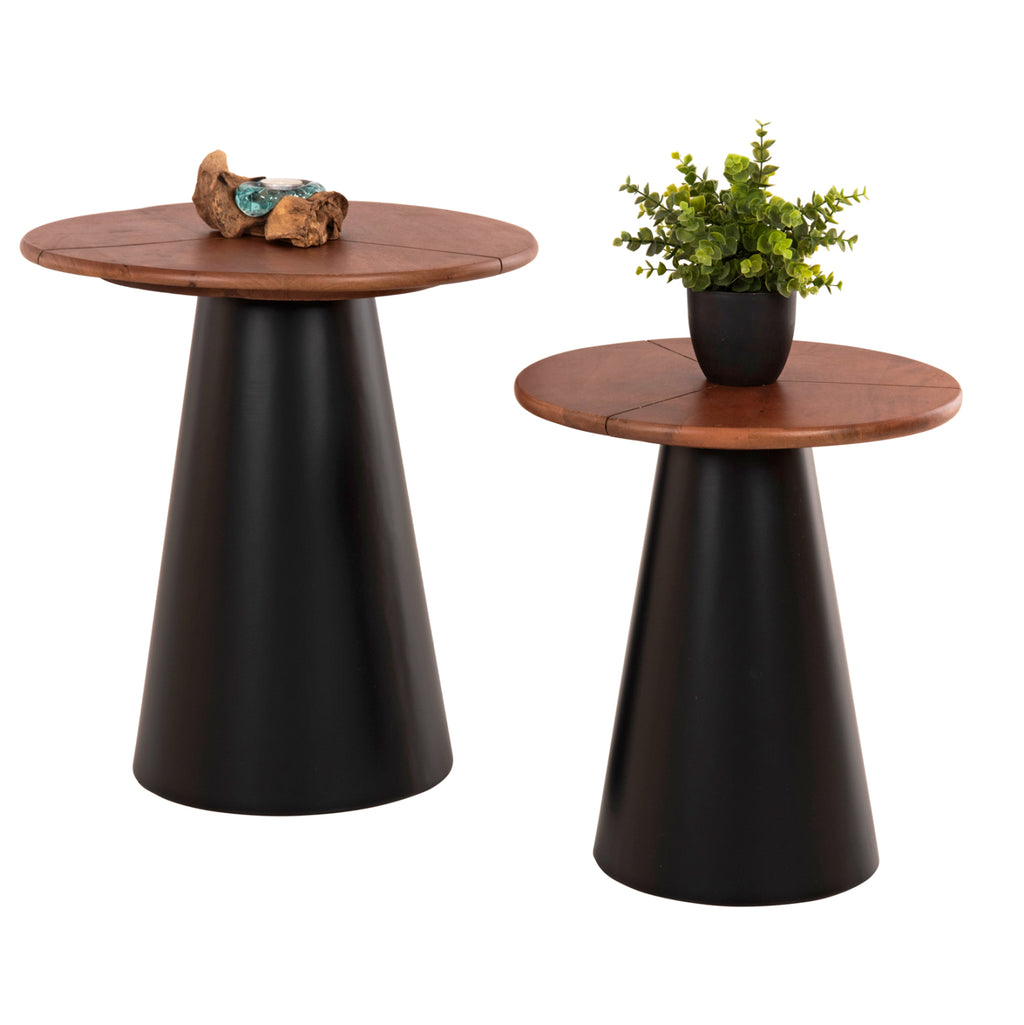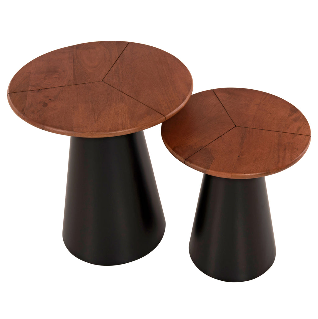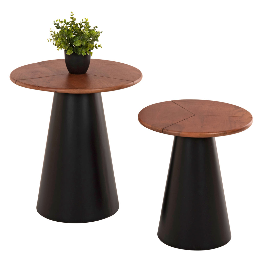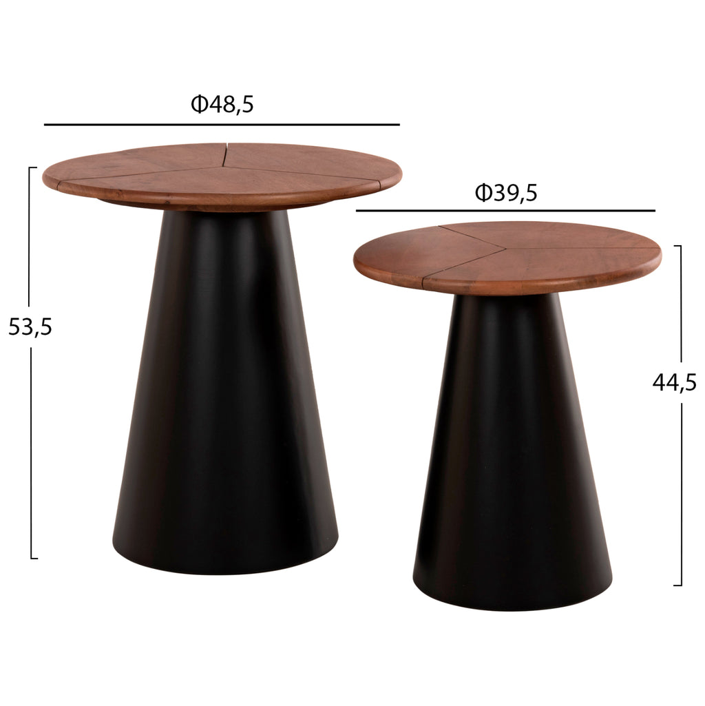 Холната маса SUNNI от 2 е едно от новите попълнения в нашата гама. Това са 2 кръгли метални маси с конична основа. Цветът им е ЧЕРЕН. Повърхностите са изработени от качествена дървесина в нюанс орех. Идеален както за дома, така и за бизнес помещения. РАЗМЕРИ: Височина: Φ48.5x53.5H см. Ниска: Φ39,5x44,5H cm. МАТЕРИАЛИ НА КОНСТРУКЦИЯТА: Комплектът е изработен от метал, а повърхностите са от масивно мангово дърво. Когато говорим за масивно дърво, имаме предвид дървета, направени изцяло от ствола на дърво. Масивната дървесина е най-скъпият избор по отношение на дървесината, но се откроява със своята вечна естетика. MANGO е плътна и здрава твърда дървесина с особено привлекателна вода. Неговите дървесни цветове са уникални, тъй като включват няколко тона и цветове, вариращи от светли нюанси като тъмно кафяво до светло розово или зелено. Той е по-лек от другите видове дървесина и е водоустойчив. ПОДДРЪЖКА: Конструкционните материали позволяват лесна поддръжка на масите. Забърсване с мокра кърпа е достатъчно, за да полирате масите, тъй като мангото е особено устойчиво на влага по природа. *Комплектът се доставя разглобен във фабрична опаковка ** Цветопредаването на продукта може леко да се различава от фотографското изображение на вашия екран.