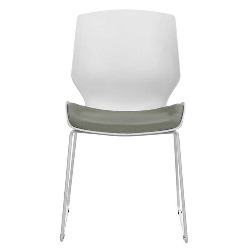 *Уникален квадратен гръб и седалка от полипропилен (100% рециклируем материал) с висока устойчивост на износване. Дизайнът на седалката поддържа гръбнака и кръста, предлага се в бял цвят.