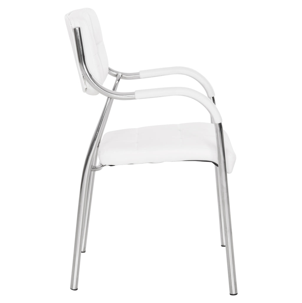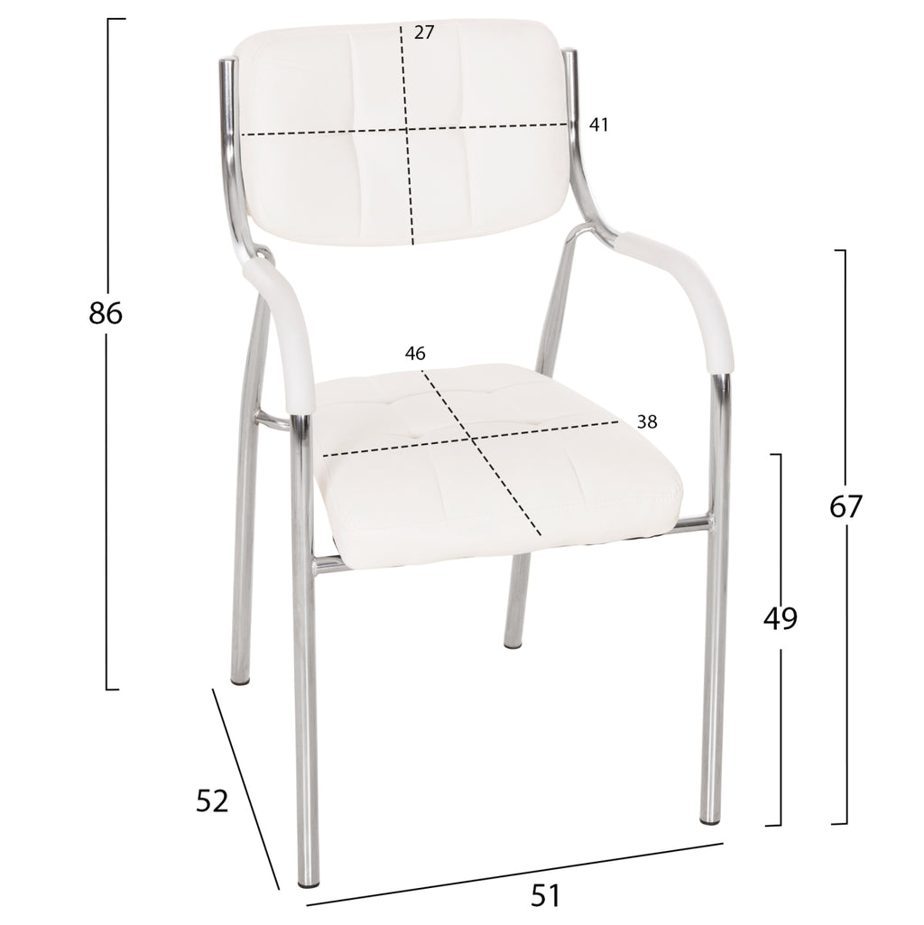 Накарайте гостите си да се чувстват удобно със стол OBERON. Това е съвместен офис стол в бял цвят и семпъл дизайн, но със сигурност красив. Той е хромиран, а седалката и облегалката са независими една от друга. Предната част на седалката е с лек наклон, за да е по-приятна и удобна за ползване, а подплатата й е в квадратен капитониран стил, както на седалката, така и на облегалката. Рамката на стола е с красиви извивки, докато ръцете са с поликарбонатна подплата за по-приятна текстура. РАЗМЕРИ: 51x52x88H см. Размери на седалката: 38х46 см. Размери на гърба: 41х27см. Височина на ръцете: 67 см. Височина на седалката: 49 см. Височина на крака: 38см. Разстояние между краката: 52,5х55 см. МАТЕРИАЛИ НА ИЗРАБОТКА: Рамката на стола е изцяло метална с лъскаво хромирано покритие. Седалката и облегалката са покрити с висококачествена PU кожа. Това е известно още като синтетична кожа или изкуствена кожа и има текстурата на ленен плат. Синтетичната кожа е еволюцията на изкуствената кожа, но с основната характеристика, че не се различава лесно от окото от истинската кожа. Съставът му е основно полиуретан и полиамидни микровлакна, за разлика от изкуствената кожа, която основно съдържа PVC. В долната част на 4-те крака на стола има пластмасови тапи за защита на пода. ПОДДРЪЖКА: Столът не се нуждае от специална поддръжка. Металната рамка е издръжлива, а хромираното покритие осигурява допълнителна защита. Следователно едно минаване с влажна кърпа е достатъчно. PU кожата се почиства с влажна кърпа и само при упорити петна можете да използвате мек почистващ препарат. Като цяло PU не се напуква и не се влияе от слънцето. ПРЕДИМСТВА: Столът OBERON е прост и полезен стол за колаборация, който ще ви удовлетвори максимално. Той е красив с широка седалка и е идеалният избор за заседателни зали или рецепции. Неговият дизайн с хубави извивки и капитонирана техника на седалката и облегалката, лесно се комбинира с много декоративни шарки и с много различни пространства, без да се правят компромиси.