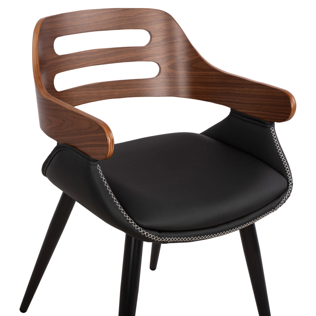 Фотьойл Collaborative с уникален, модерен дизайн в комбинация от дърво в нюанс орех с красиви детайли и PU в черен нюанс. Краката му са метални, боядисани, за да придадат вид на дърво. Размери: 50х53х76см. Височина на седалката: 48см. Височина на ръцете: 65см. Размери на седалката: 42х41 см.
