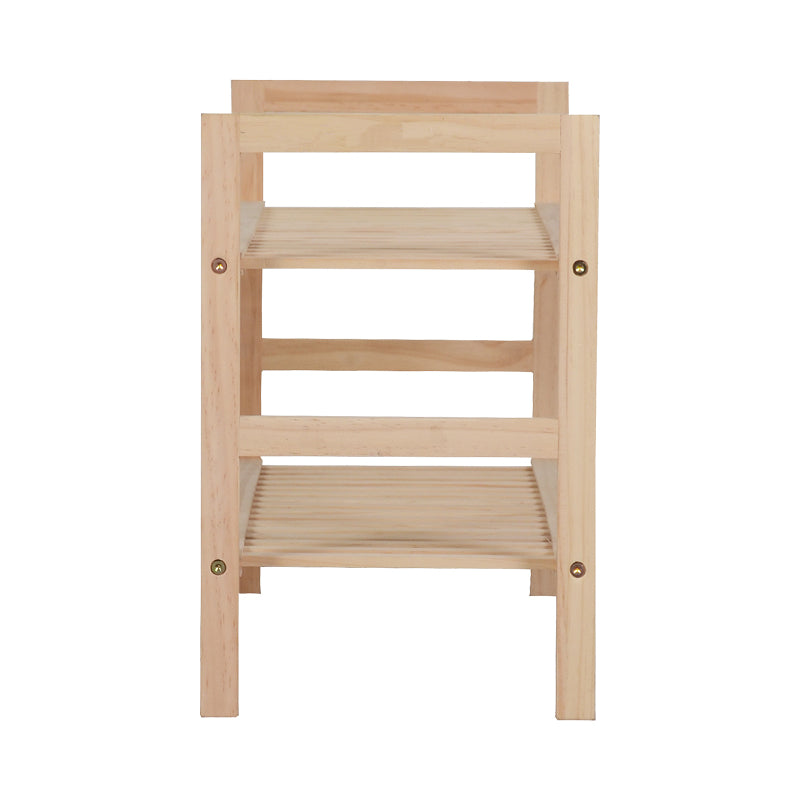Изработена от издръжлива дървесина, тя е на три нива с рафтове, които позволяват правилна циркулация на въздуха, предотвратявайки натрупването на влага и неприятните миризми. Нейният семпъл, минималистичен дизайн я прави подходяща за всяко пространство, независимо дали е в антрето, коридор или в гардероб.
