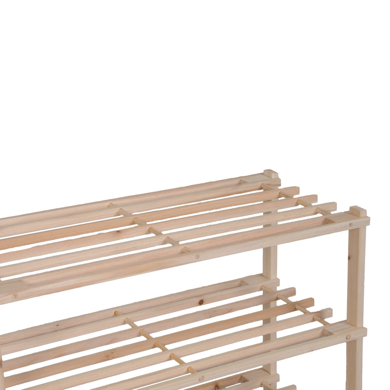 Изработена от издръжлива дървесина, тя е на три нива с рафтове, които позволяват правилна вентилация, предотвратявайки натрупването на влага и неприятни миризми. Изчистеният ѝ, минималистичен дизайн я прави подходяща за всяко пространство, независимо дали е в антрето, коридор или в гардероб.