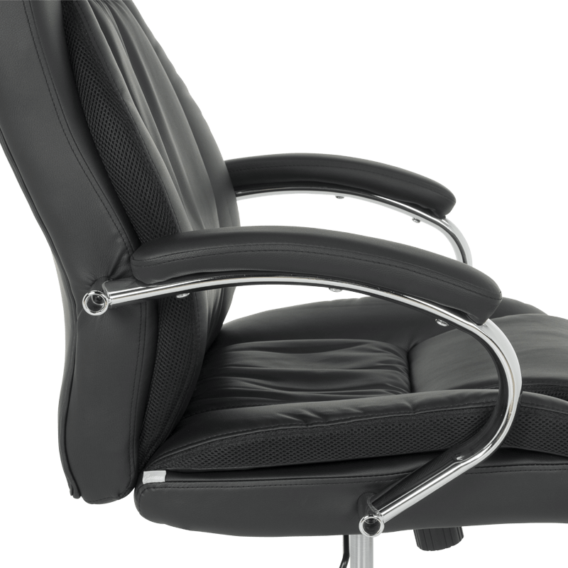 Президентският офис стол Carmen 6517-1 е съчетание от стилен дизайн и максимален комфорт. Той е изработен от висококачествени материали и здрава хромирана основа със силиконови колелца, които са подходящи за твърда настилка. Притежава функция за люлеене и фиксиране в изправена позиция, както и газов амортисьор за регулиране на височината. Пълна информация за размерите и характеристиките на модела ще намерите в таблицата в таб/поле "Техническа информация".