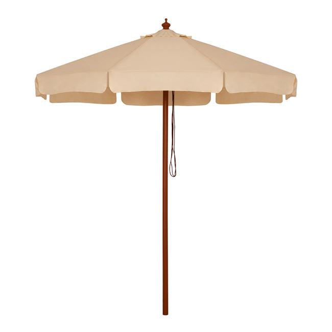 Чадър Φ2.30м. с дървена рамка, 8 спици и двойна макара. Дървеният чадър КГ6021 е перфектен и незаменим избор за летните и слънчеви дни. Широко използван в градини, плажове, вътрешни дворове като кафенета, ресторанти и плувни басейни. 8-те спици и рамката от една част правят чадъра по-стабилен. Размери: Φ2.30м. Височина на чадъра: 2.50м. Дървена рамка: Φ48 мм. единична част Спици: 8 броя с размери 20х28 см. Цвят на рамката: Кафяв. Плат: 240гр. Полиестер с PA покритие в бежов нюанс, с капаци 16 см. Забележка с двоен скрипец: Чадърът е подходящ за използване на открито. При нестабилно време трябва да бъде затворен.