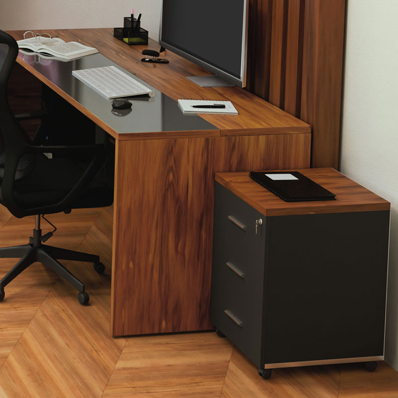 - Комбинира се хармонично с останалата част от серията: библиотеки, шкафове, бюра и конферентни маси
