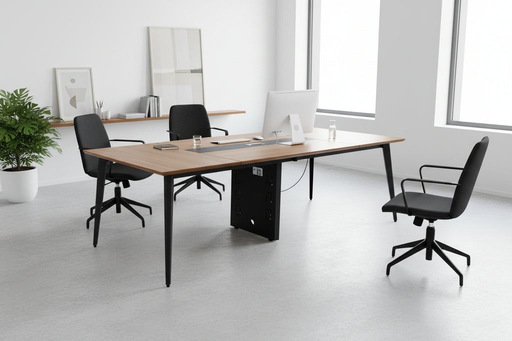 Професионално конферентно бюро SUPREME, изработено от висококачествен меламин в нюанс меден дъб и крака в сиво металик. Бюрото е най-обикновената мебел, изберете го правилно, за да ви служи повече, тъй като ще прекарвате върху него по няколко часа всеки ден. Размери: 242х120х75см. Дебелина на повърхността: 3см. Продуктът се доставя в несглобен вид, във фабрична опаковка с подробна инструкция за сглобяване. ***ПРОДУКТЪТ ТРЯБВА ДА СЕ СГЛОБЯВА САМО ОТ КВАЛИФИЦИРАНИ ТЕХНИЦИ***