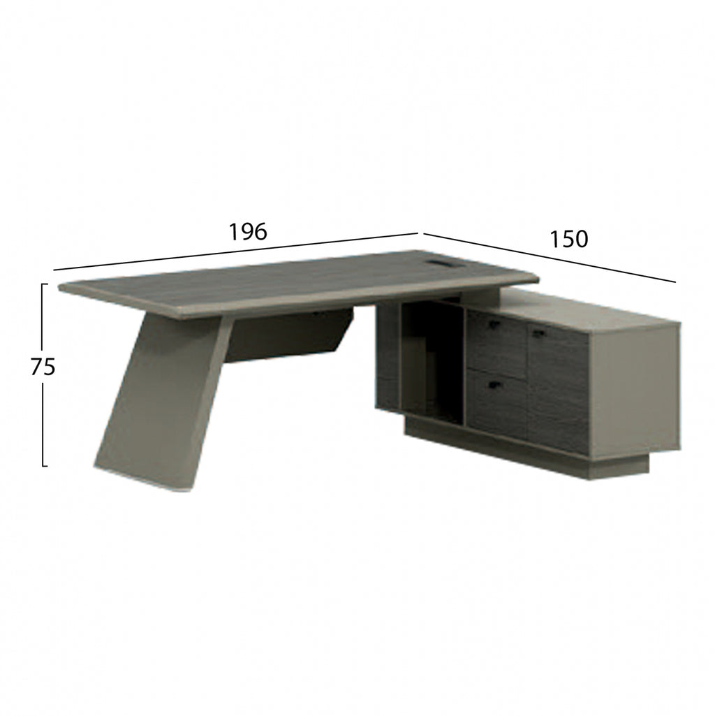 Размерите на бюрото са 196x150x75H см. Те предоставят широка площ за лаптоп, компютър, принтер и офис аксесоари. Това гарантира удобна и добре организирана работна среда.
