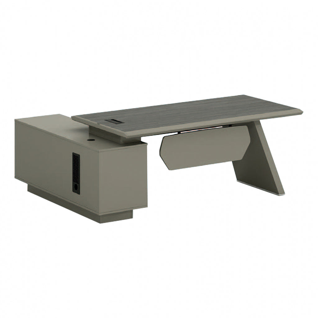 Бюрото е изработено от устойчив меламин, който гарантира дълъг живот и лесна поддръжка. Цветовата комбинация мока и пепел придава съвременен и професионален облик. Благодарение на тези качества то се вписва отлично във всеки офис интериор.