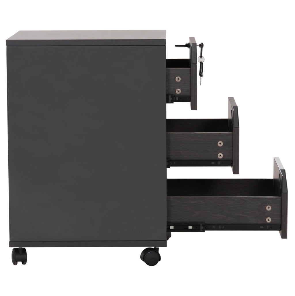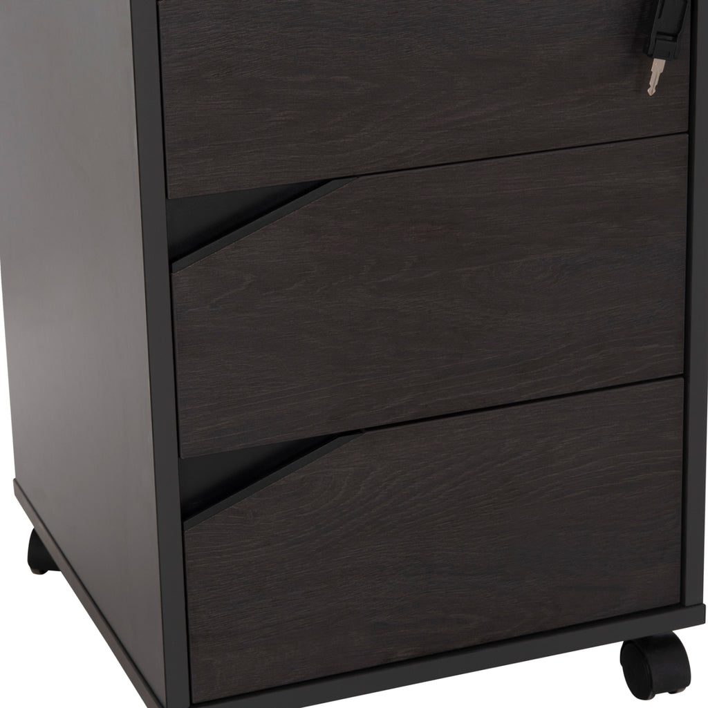 Ролетен офис скрин от меламин в сиви и бежови нюанси, с ключалка, в модерен дизайн. Предназначен за съхранение на формуляри и ежедневните дребни предмети от вашия офис. Размери: 40х40х66см. Продуктът се предлага разглобен в опаковка.