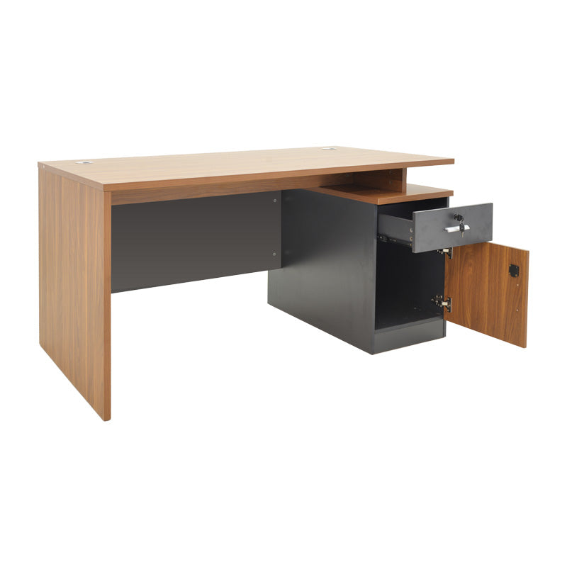 Бюрото разполага с чекмедже и шкаф, които са идеални за съхранение на документи, папки и канцеларски материали. За по-голямо спокойствие при ежедневната работа и защита на важни вещи, те са оборудвани с ключалки. Това прави бюрото особено подходящо за професионални офиси, където сигурността е от значение.