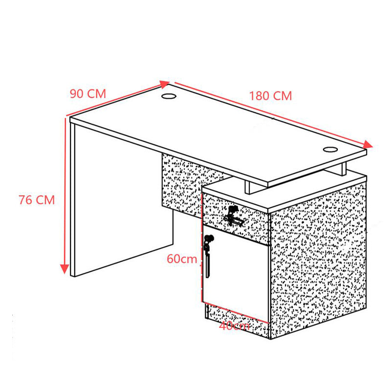 Бюрото е изработено от ПДЧ с меламиново покритие, материал, който е устойчив на износване, петна и надраскване. ПДЧ е композитен дървесен продукт, създаден от рециклирани дървесни частици, което го прави едновременно здрав и екологичен. Меламиновото покритие (LPB) придава на повърхността допълнителна защита и елегантен завършек, като същевременно улеснява поддръжката.