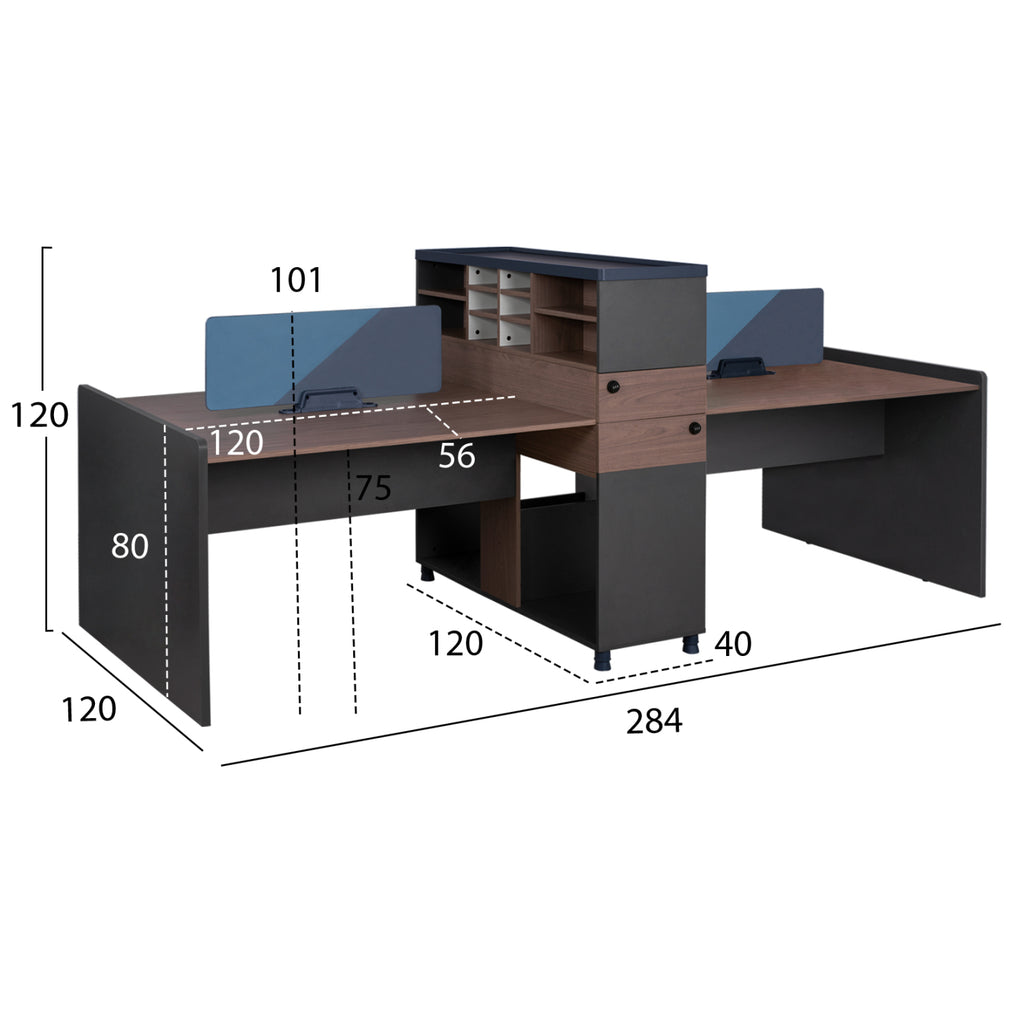 С размери 120x60x75 см, бюрото е достатъчно компактно, за да се побере в по-малки пространства, но същевременно предлага просторна повърхност за работа. Елегантната комбинация от тъмно сиво и орех придава модерен вид, който се вписва във всякакъв интериор.