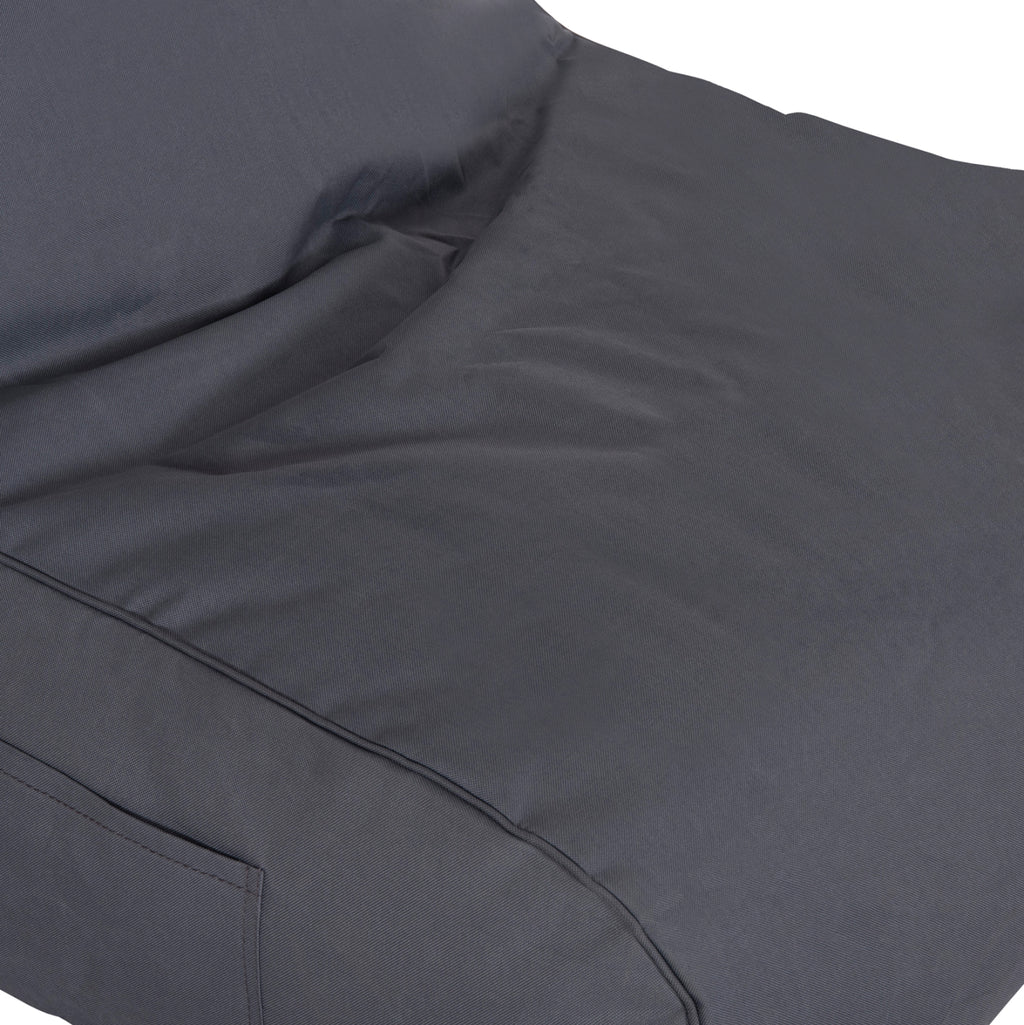 Обновете екстериора на вашето бизнес пространство, бар на плажа или бар на басейна с професионалния пуф Cloud, превръщайки го в гостоприемна и стилна среда. Изработен от подсилен висококачествен полиестерен плат 600гр, водоустойчив с UV защита в сив нюанс и с особено висока устойчивост на атмосферни условия, слънце, влага, но и на ежедневно триене. Това е много удобна и релаксираща седалка, която предлага възможност да се използва като фотьойл или като шезлонг. Характеристики: 600gr висококачествен полиестерен плат, водоустойчив с UV защита. Има подсилен цип за лесен достъп до вътрешността му и за по-лесна смяна на пълнежа в бъдеще, ако е необходимо. Вътрешният му пълнеж е от полистиролови гранули, които гарантират, че пуфът няма да потъне. Има и специален джоб отстрани за поставяне на списание или книга. Ако външното покритие има гънки, те ще изчезнат след няколко дни употреба. Размери: 81х78х73 см.