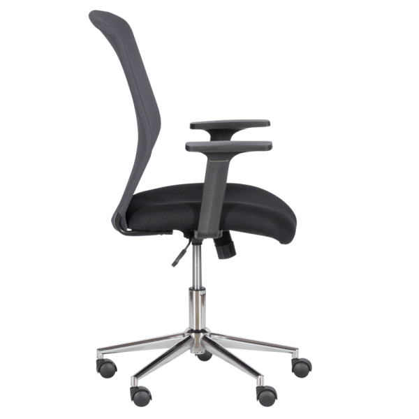 Работният офис стол Carmen 7047-1 е практичен работен стол, подходящ както за офиса, така и за дома. Той е изработен от здрава хромирана основа, седалка от дамаска и удобна облегалка от мрежа. Столът е с регулируема височина и люлеещ механизъм.