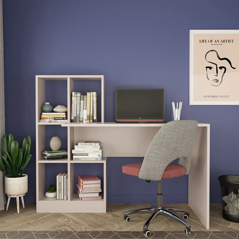 Тази стилна мебел съчетава практичността на бюро с гъвкавостта на рафт за книги, създавайки организирано и елегантно пространство за учене или работа.