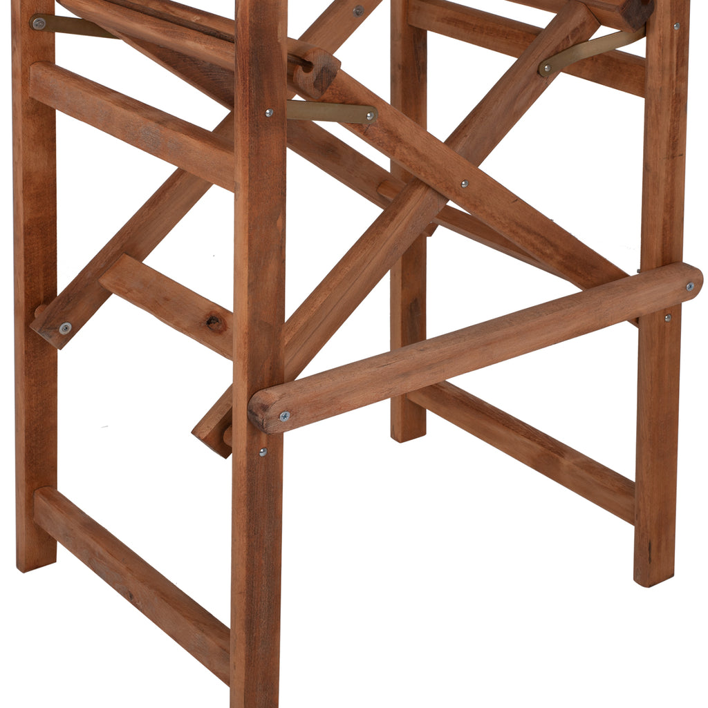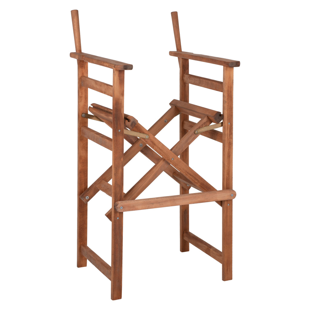 PALMER е бар стол с облегалка, който ще ви зарадва. Всъщност това е режисьорски стол във висок вариант. Няма нужда от специално описание, тъй като всеки знае какво означава режисьорски стол. Той е сгъваем и стабилен и разбира се, възможностите за неговото "обличане" са многобройни и много лесно може да се съчетае с всякакъв вид декорация, която изберете за вашето пространство, било то двора или балкона на вашия дом, или вашето бизнес пространство. РАЗМЕРИ: Размери: 57x57x117H см. Височина на седалката: 76 см. Височина на ръцете: 97 см. Размери в сглобен вид: 57x27x117H cm. КОНСТРУКТИВНИ МАТЕРИАЛИ: КГ5578.01 е изработена от букова дървесина с цвят ОРЕХ с импрегнация. Букът е твърдо, здраво, еластично и тежко дърво с малки пори. Това дърво е елегантно и има червеникавокафяв цвят. Когато е сух, букът се счита за по-добър от дъба. Знаете ли, че...: Импрегнирането в най-широк смисъл е оцветяване на дърво (обикновено лакове) по метода на потапяне. Нормалното импрегниране на дървото обаче се извършва в пещ под налягане. Там дървесината, чрез нанасяне на консервиращо вещество, се предпазва дълги години от гъбички и насекоми, в резултат на което придобива многократно по-дълъг живот от този на неимпрегнирана дървесина. ПОДДРЪЖКА: Бар столът се поддържа много лесно. Достатъчно е едно забърсване с леко влажна кърпа, за да изглежда като нов. ПРЕДИМСТВА: КГ5578.01 се доставя само като рамка, без дамаски и седалка, като по този начин ви дава свободата да го "обличате" както решите, за да отговаря на пространството, което ви интересува. Той е стабилен и ще ви предложи часове релакс и безгрижие. Разбира се, голямата му популярност се дължи и на факта, че е сгъваем, което означава, че в "сгънато състояние" може да се съхранява в големи количества. Поради това е подходящ за множество пространства и е особено подходящ за всяко външно пространство.